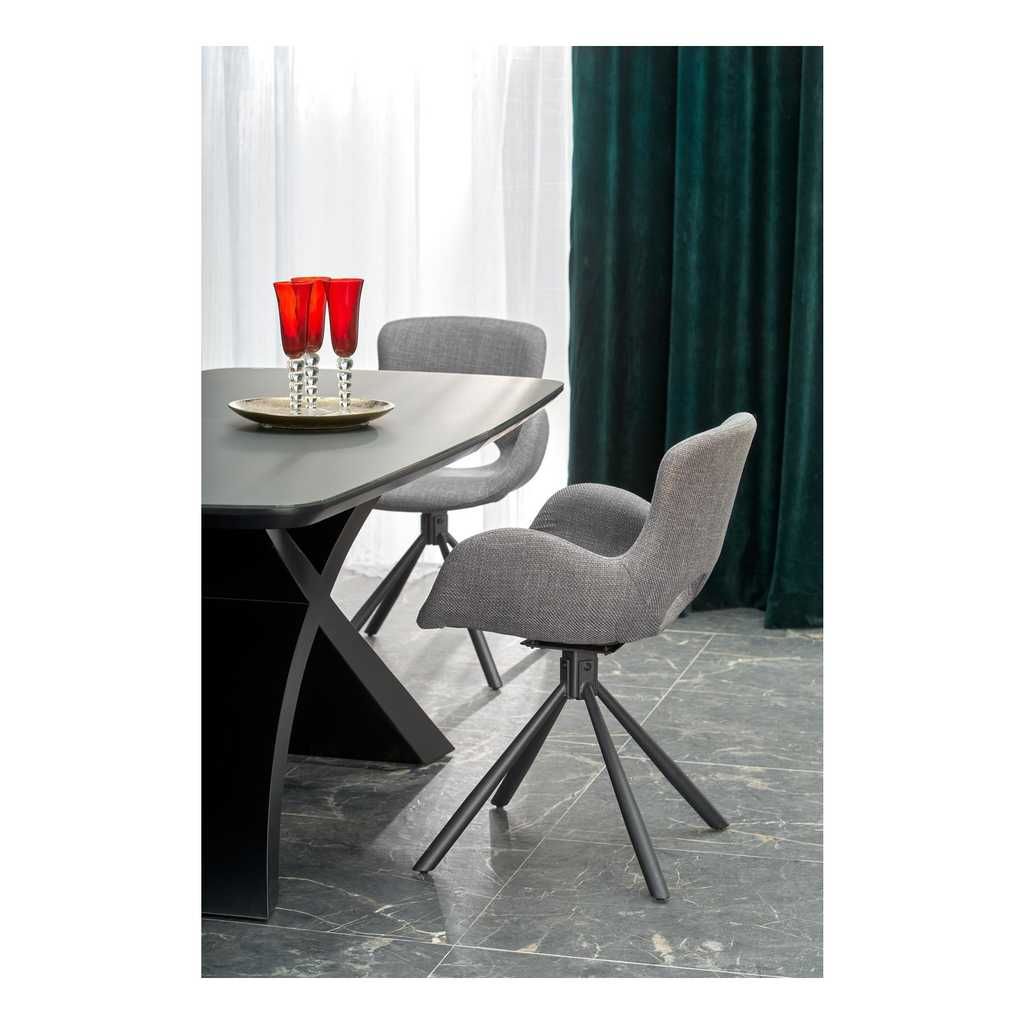 Doska stola je vyrobená z kombinácie MDF a skla, čo stolu dodáva nielen honosný vzhľad, ale aj vynikajúcu odolnosť a jednoduchú údržbu. Tento povrch je ideálny na každodenné používanie, ako aj na špeciálne príležitosti. Celok má spolu nosnosť 40 kg.