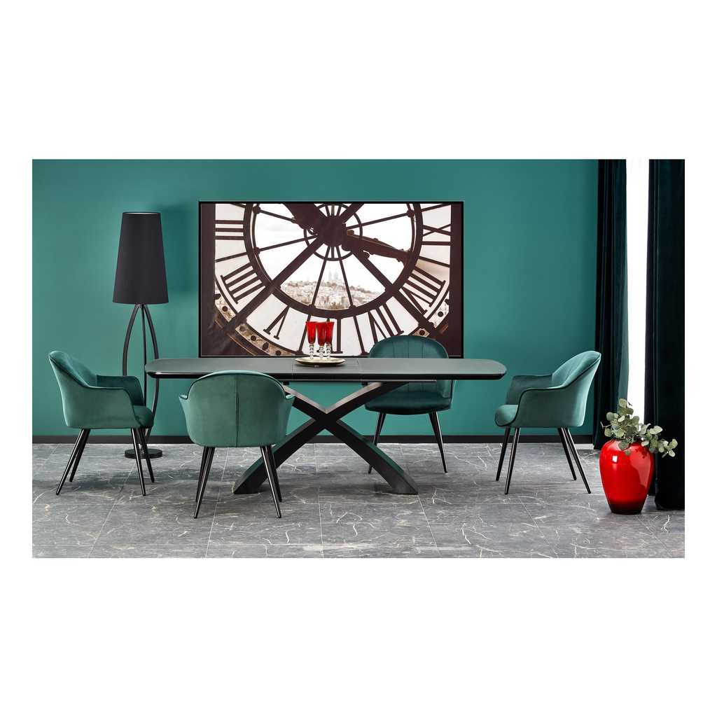 Jedálenský stôl Pizzara je predstaviteľom moderného dizajnu, ktorý spája eleganciu s praktickou funkčnosťou. Tento obdĺžnikový stôl je nielen esteticky pôsobivý, ale aj mimoriadne praktický, takže je ideálnou voľbou pre tých, ktorí vyžadujú flexibilitu a štýl pri zariaďovaní interiéru.
