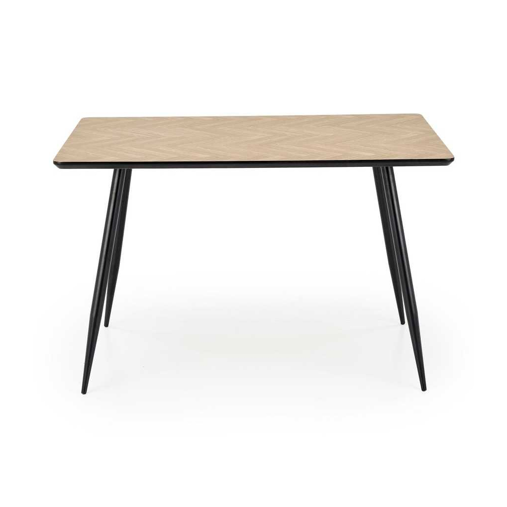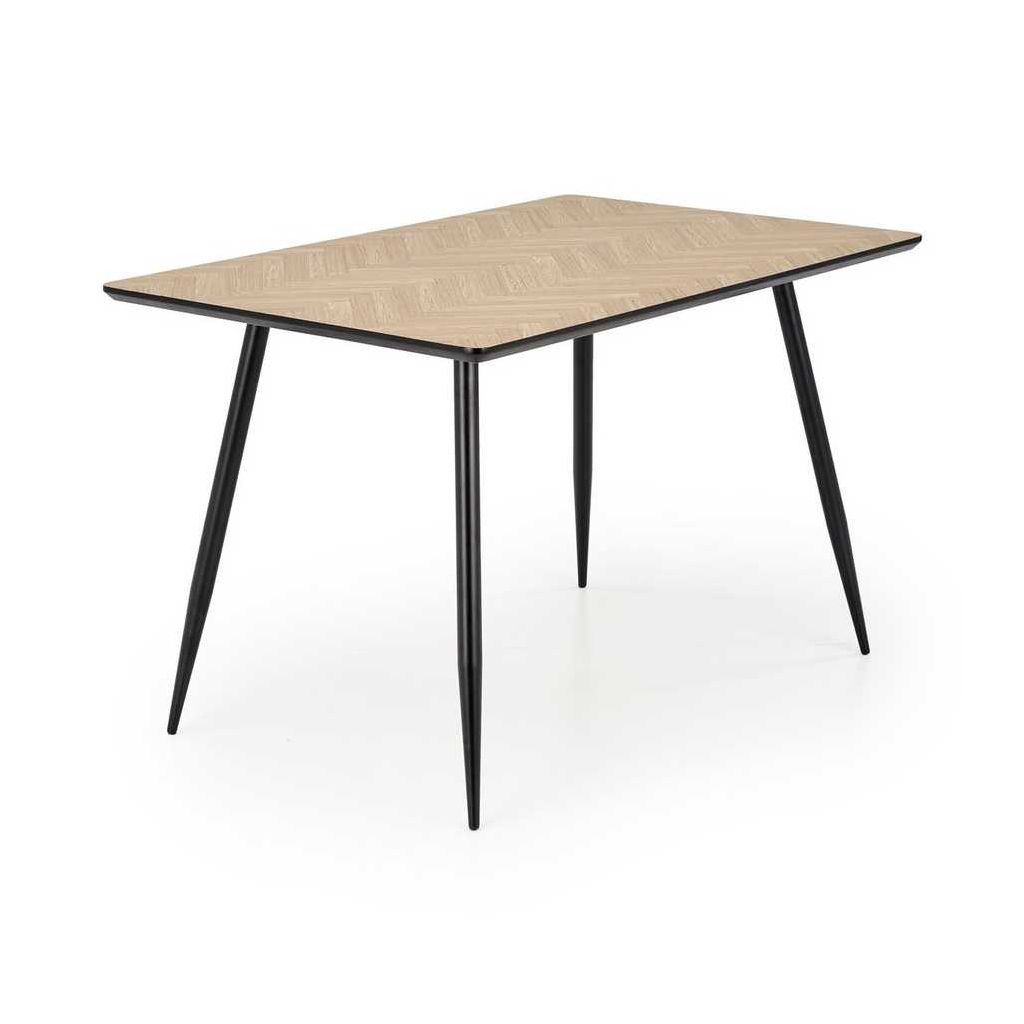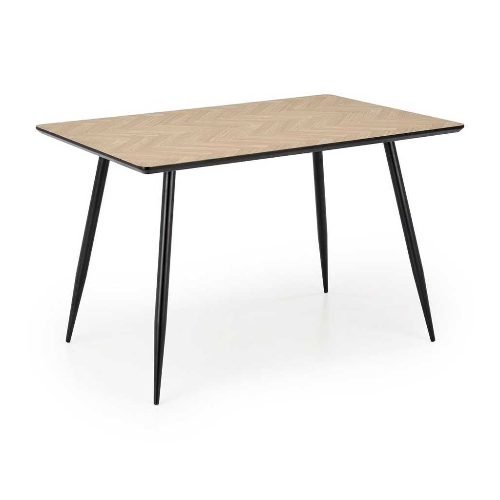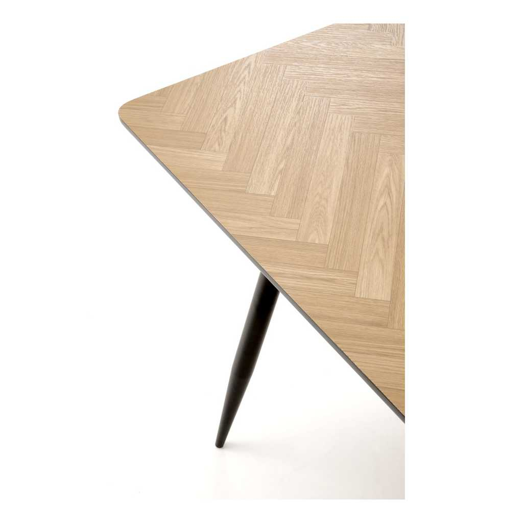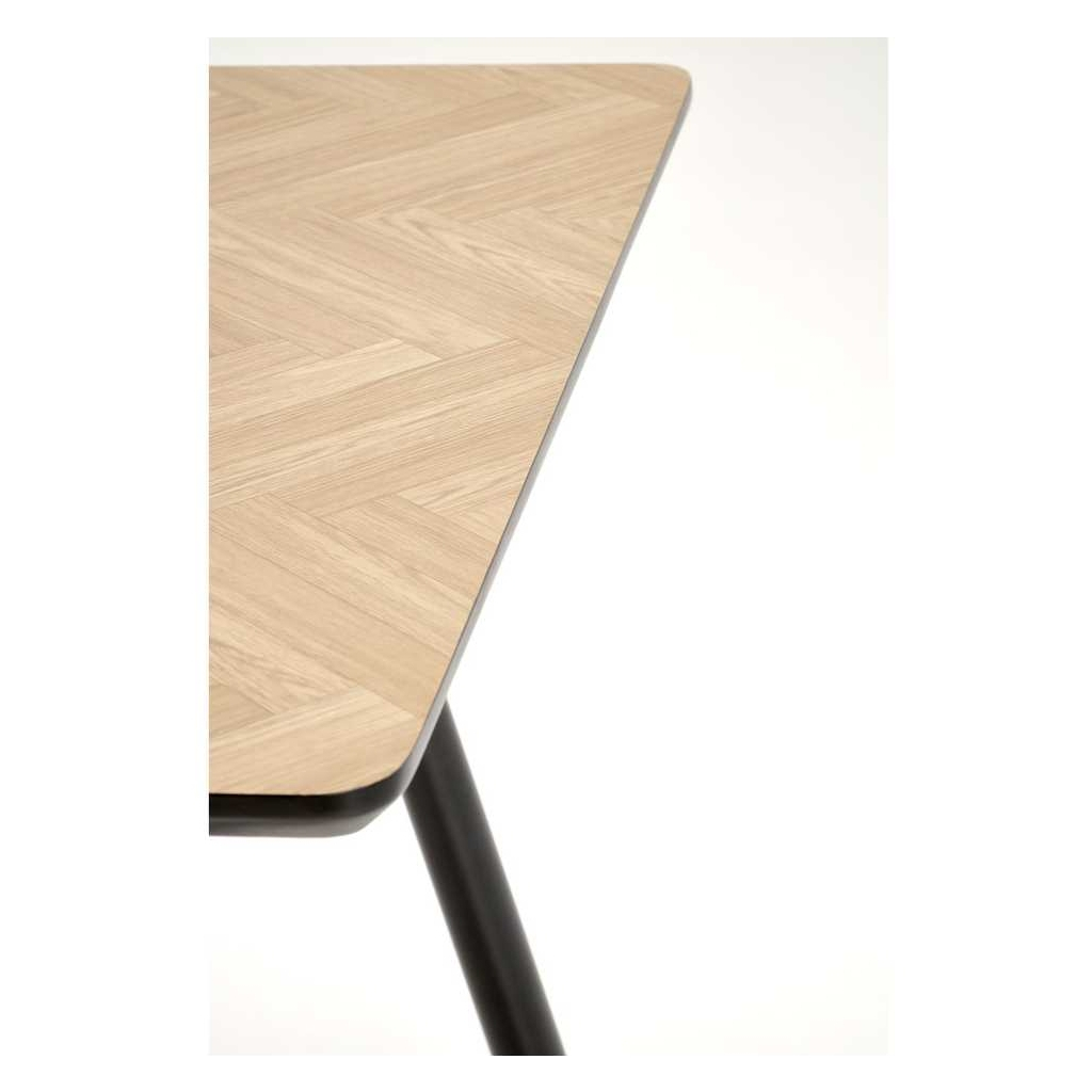 Jeho obdĺžniková doska je vyrobená z MDF v drevenom vyhotovení, ktoré dodáva priestoru uvoľnenú atmosféru. Masívna oceľová podnož s práškovou povrchovou úpravou sa stará o celkovú stabilitu stola.