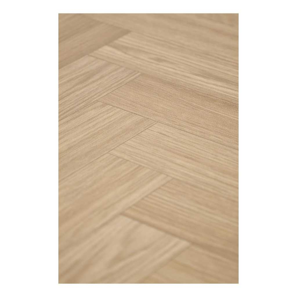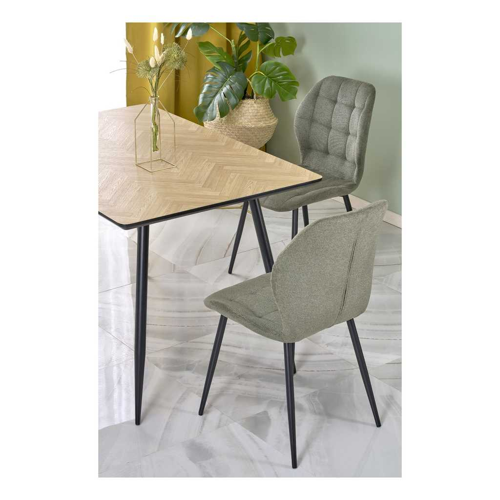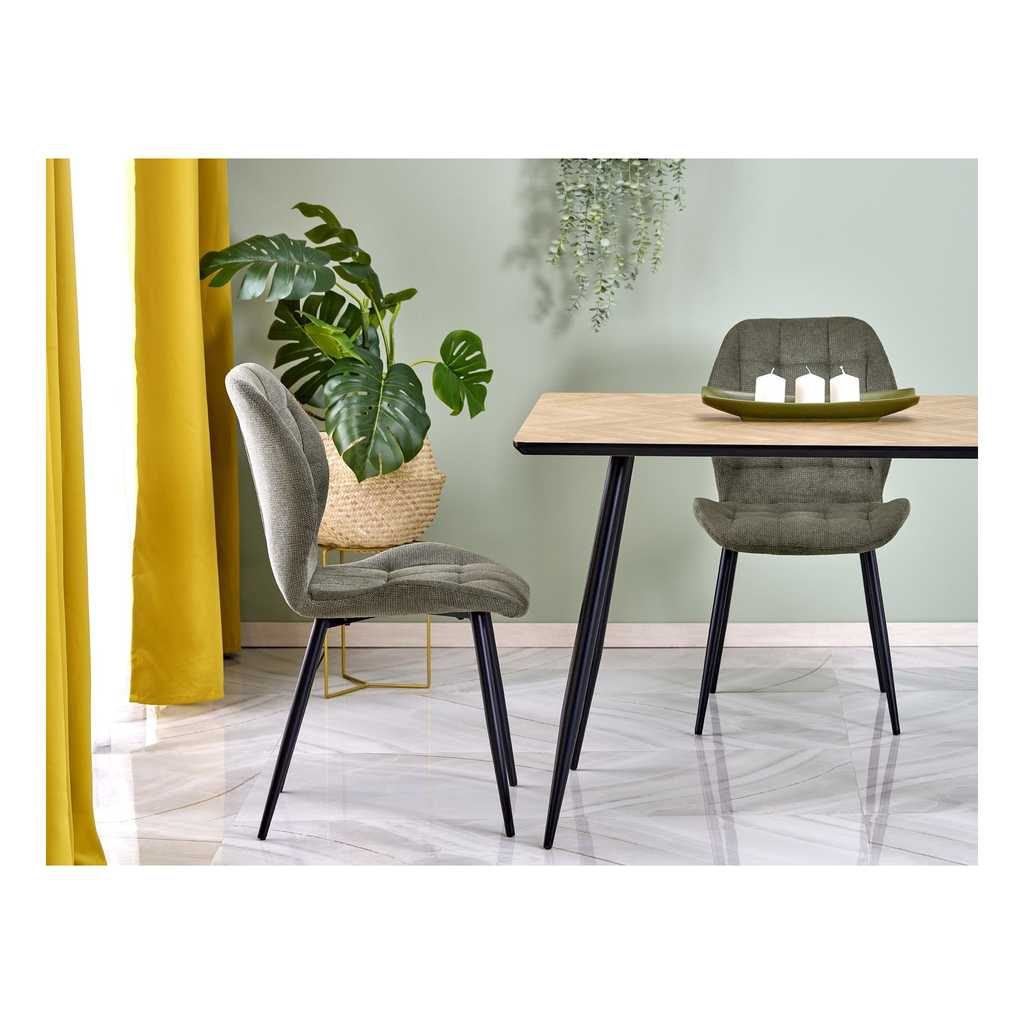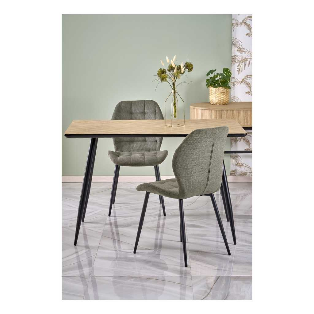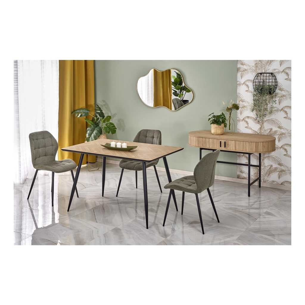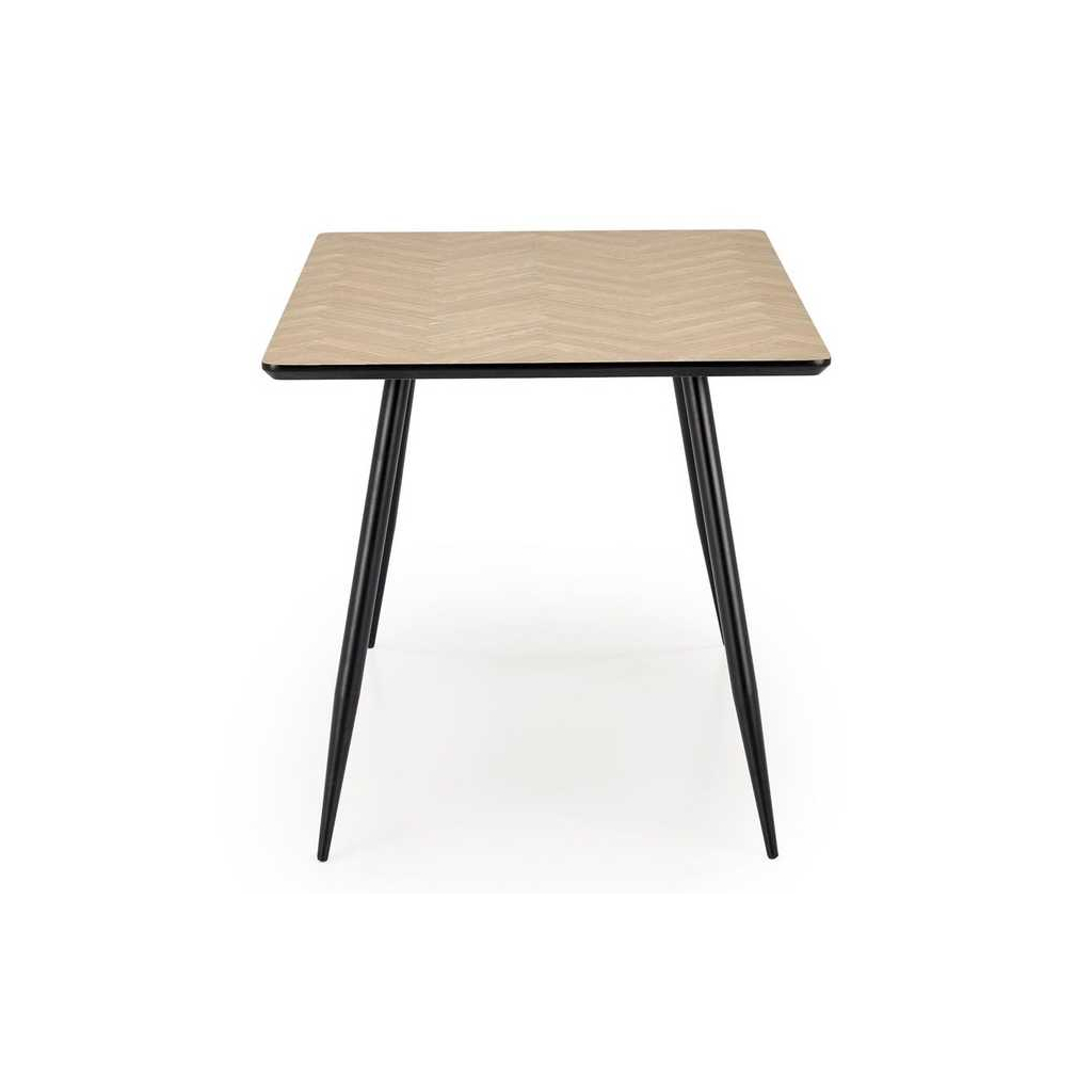 Jeho obdĺžniková doska je vyrobená z MDF v drevenom vyhotovení, ktoré dodáva priestoru uvoľnenú atmosféru. Masívna oceľová podnož s práškovou povrchovou úpravou sa stará o celkovú stabilitu stola.