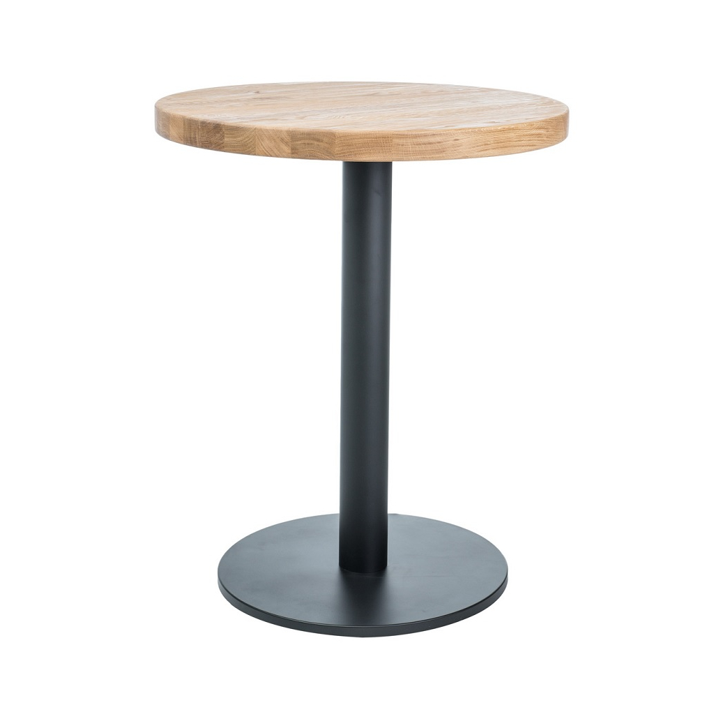Stôl disponuje pevnou kovovou nohou s rozšírenou podstavou a zaistí tak výbornú stabilitu celému stolu. Najväčšou prednosťou stola je však jeho guľatá doska, ktorá je vyrobená z dubového dreva. K stolu sa pohodlne usadia 2 ľudia.