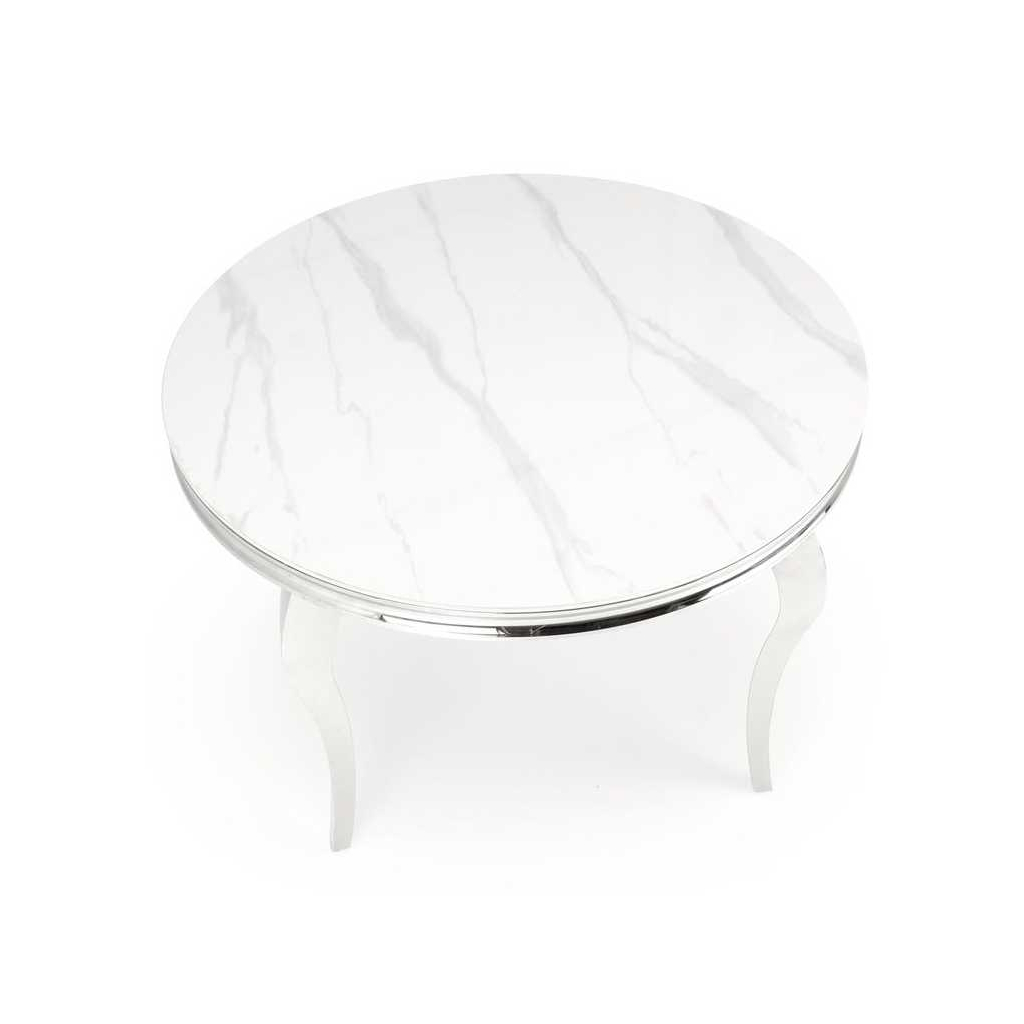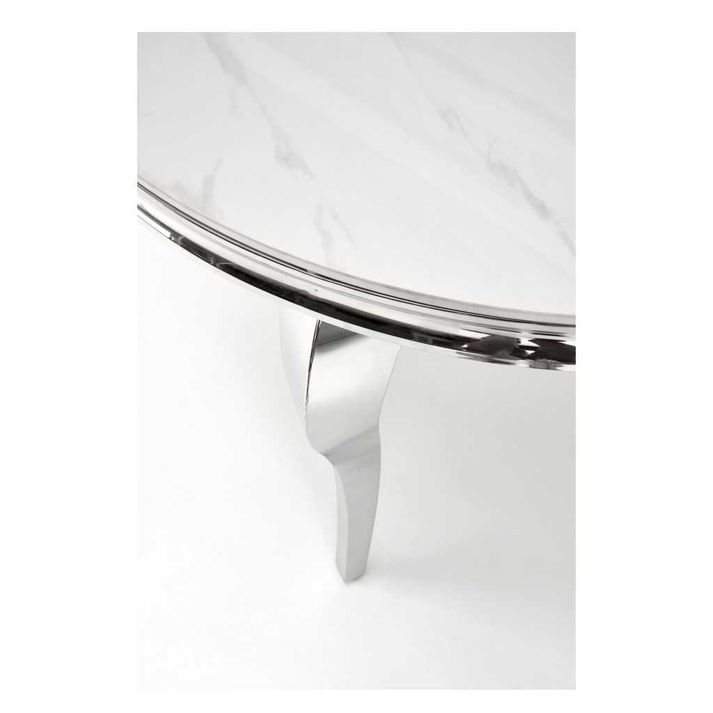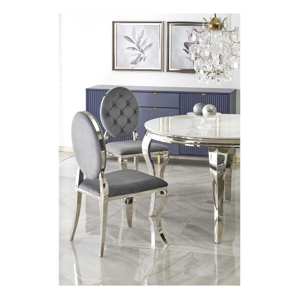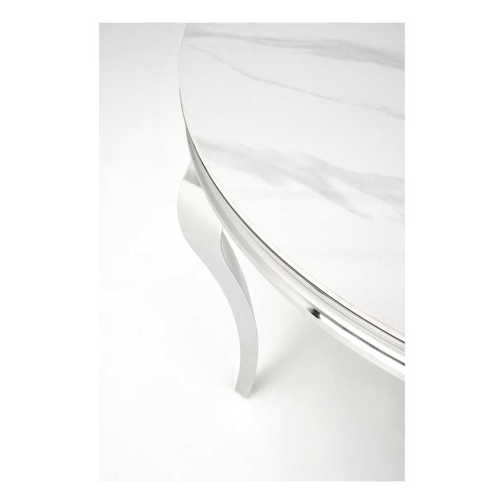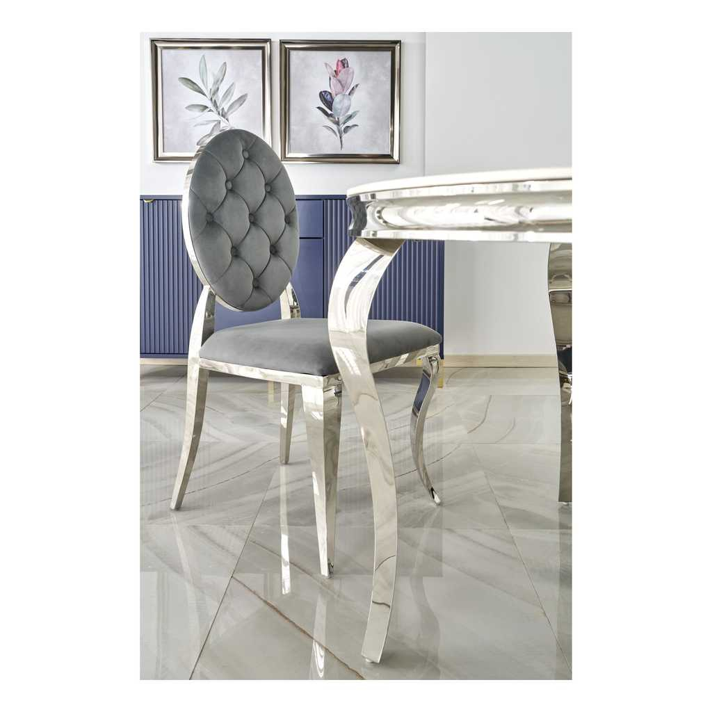 Kontrastné nohy z nehrdzavejúcej ocele s rafinovanými krivkami nielenže podčiarkujú modernú estetiku stola, ale zabezpečujú aj jeho stabilitu a pevnosť. Spolu celok pripomína nábytok šľachtického sídla.