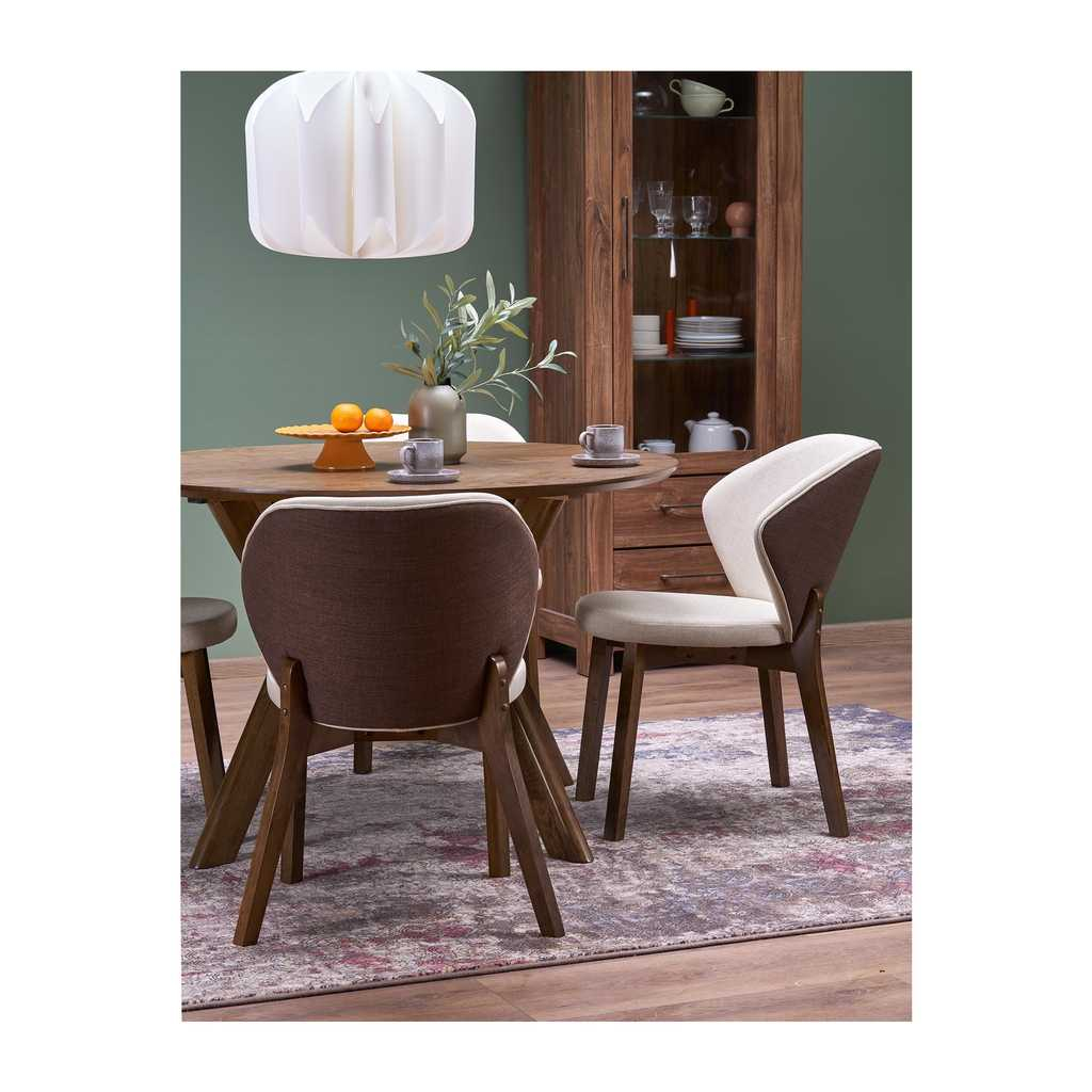 Jedálenský stôl Stockton je elegantný a pevný kus nábytku, ideálny pre rodinné stolovanie alebo spoločné chvíle pri jedle. Vďaka kruhovej doske z dreva a stabilnej drevenej podnoži ponúka prirodzený a nadčasový vzhľad, ktorý sa hodí do rôznych štýlov interiérov. Stôl je určený pre štyri osoby, čím zabezpečuje dostatok miesta pre pohodlné stolovanie.