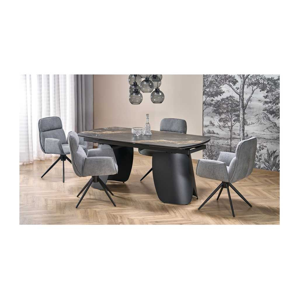 Stôl Vaughan predstavuje dokonalú kombináciu štýlu, funkčnosti a kvality. Vďaka pevnej hornéj doske z kameňa a kovovej podnoži je tento jedálenský stôl stabilný a odolný. Jeho rozkladací mechanizmus umožňuje jednoduché predĺženie zo základnej dĺžky 180 cm na impozantných 260 cm, čo poskytuje dostatok miesta pre až 8 osôb. Perfektný na rodinné stretnutia či večere s priateľmi.
