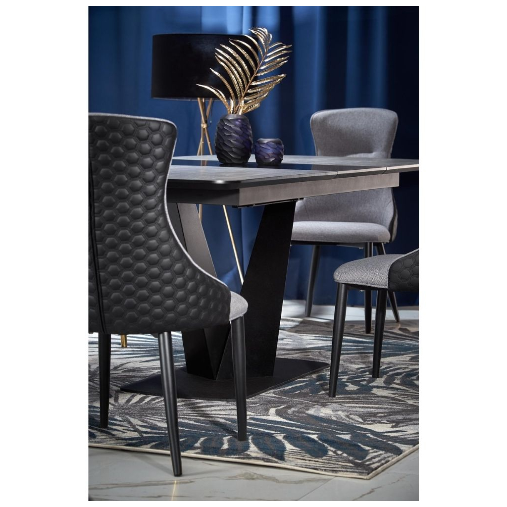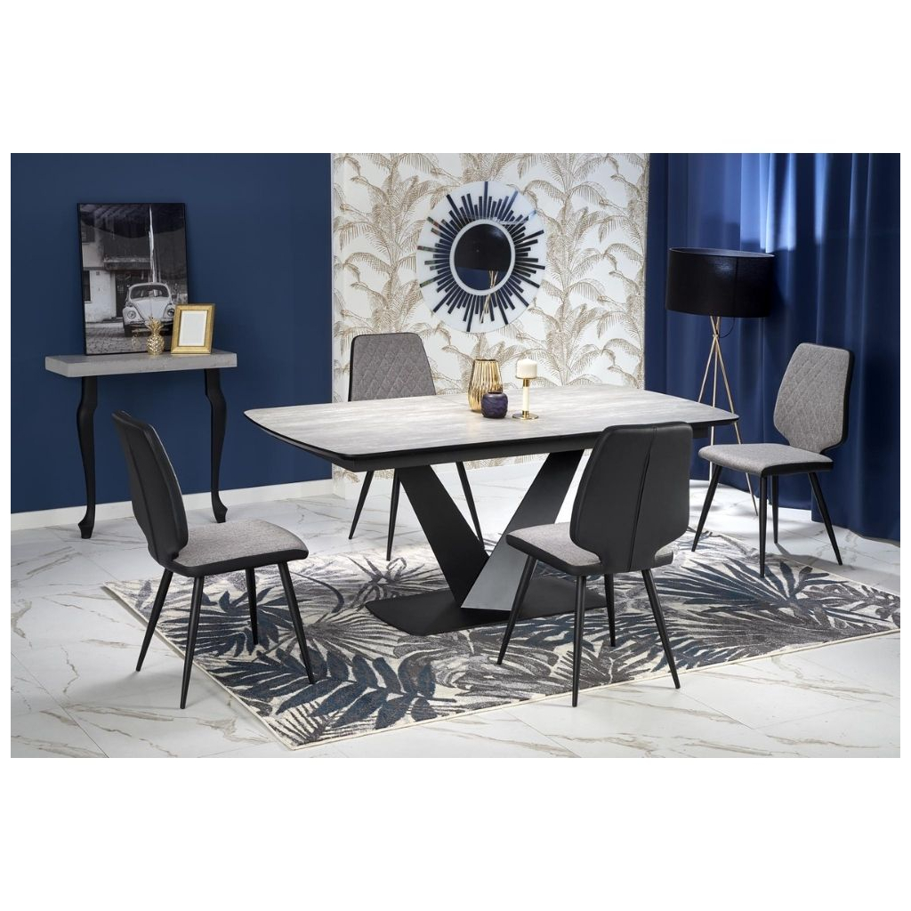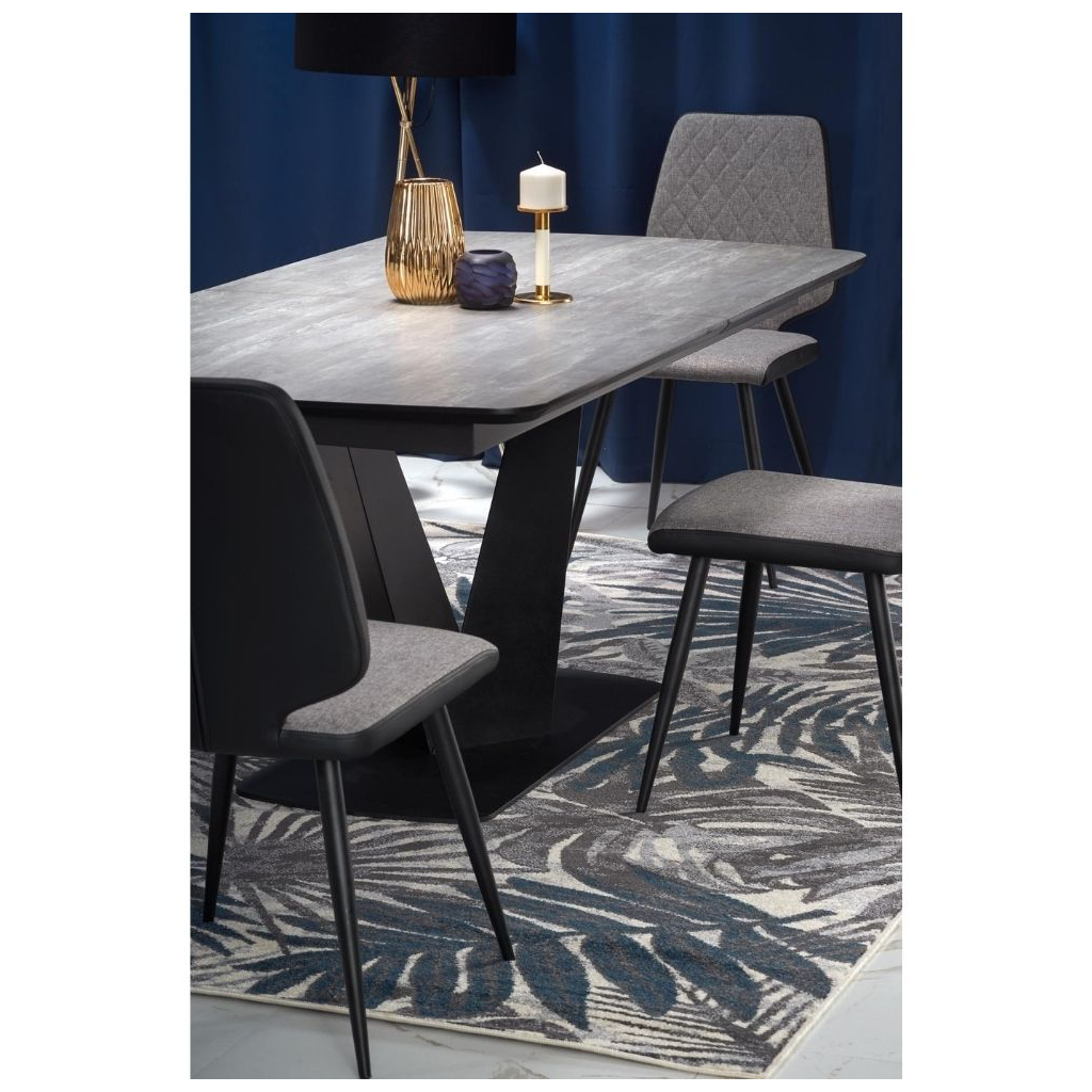 Doska stola je vyrobená z MDF v kombinácii s HPL doskou. Je vo farebnom prevedení šedá. Nohy stola sú z pevnej a stabilitu zaisťujúcej práškovanej ocele vo farebnom prevedení čierna.