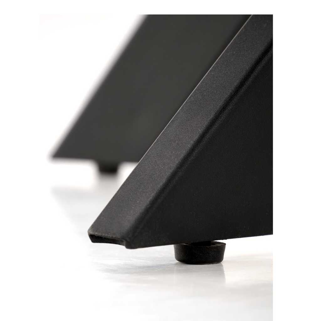 Podnož stola tvoria 4 prekrížené nohy z pevnej ocele s práškovou povrchovou úpravou. Tieto nohy majú zaujímavý vzdušný tvar, ktorý dodáva stolu nielen stabilitu, ale aj jedinečný vizuálny charakter. Oceľová konštrukcia krásne kontrastuje s vrchnou doskou a vytvára sofistikovaný a zároveň moderný vzhľad.