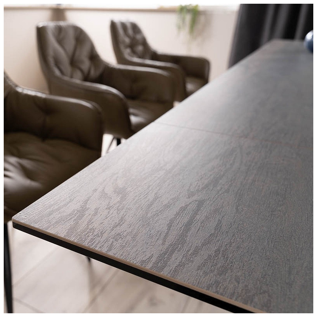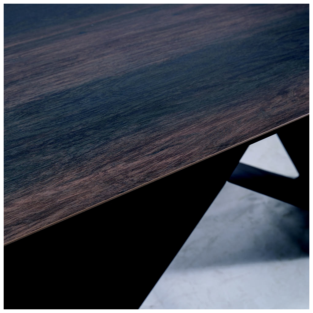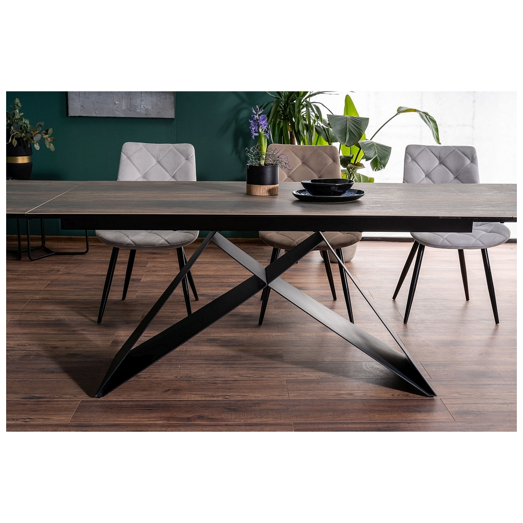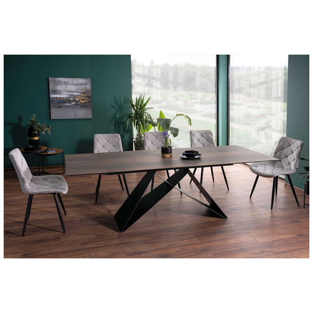 Doska stola je zhotovená z tvrdeného skla, čím jedálenský stôl pôsobí mohutne a súčasne elegantne. Nohy zaujímavého a netradičného tvaru sú kovové a zaisťujú stolu žiadúcu stabilitu. Doska stola je v prevedení biely mramor/čierny mat.