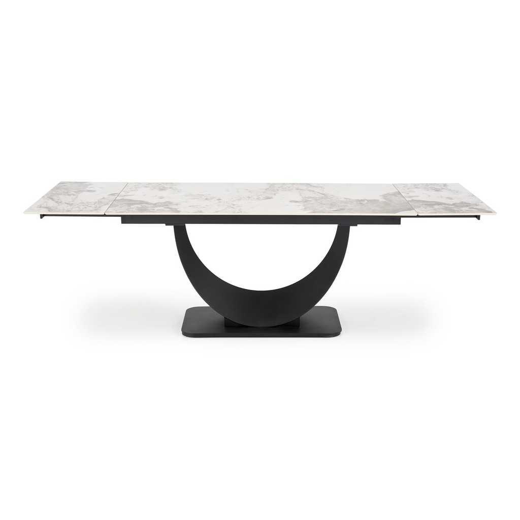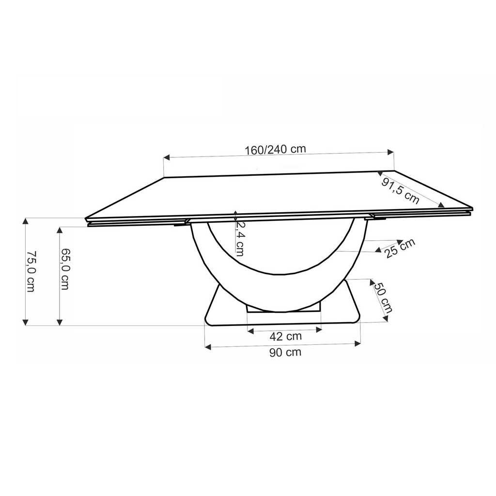 Stabilitu a eleganciu stolu dodáva jeho pevná oceľová podnož s práškovou povrchovou úpravou. Polkruhová základňa zaujme na prvý pohľad. Je dizajnovým prvkom a zároveň zabezpečuje pevné ukotvenie stola k podlahe.
