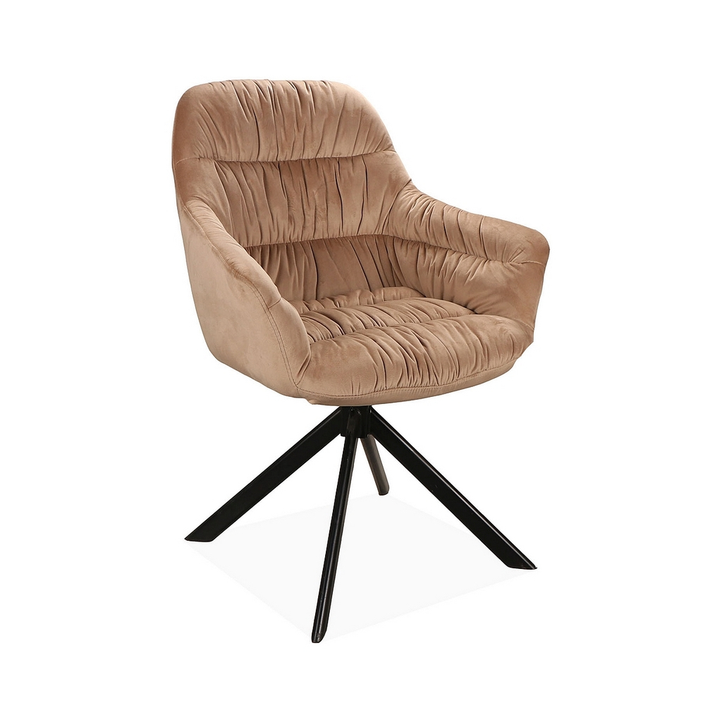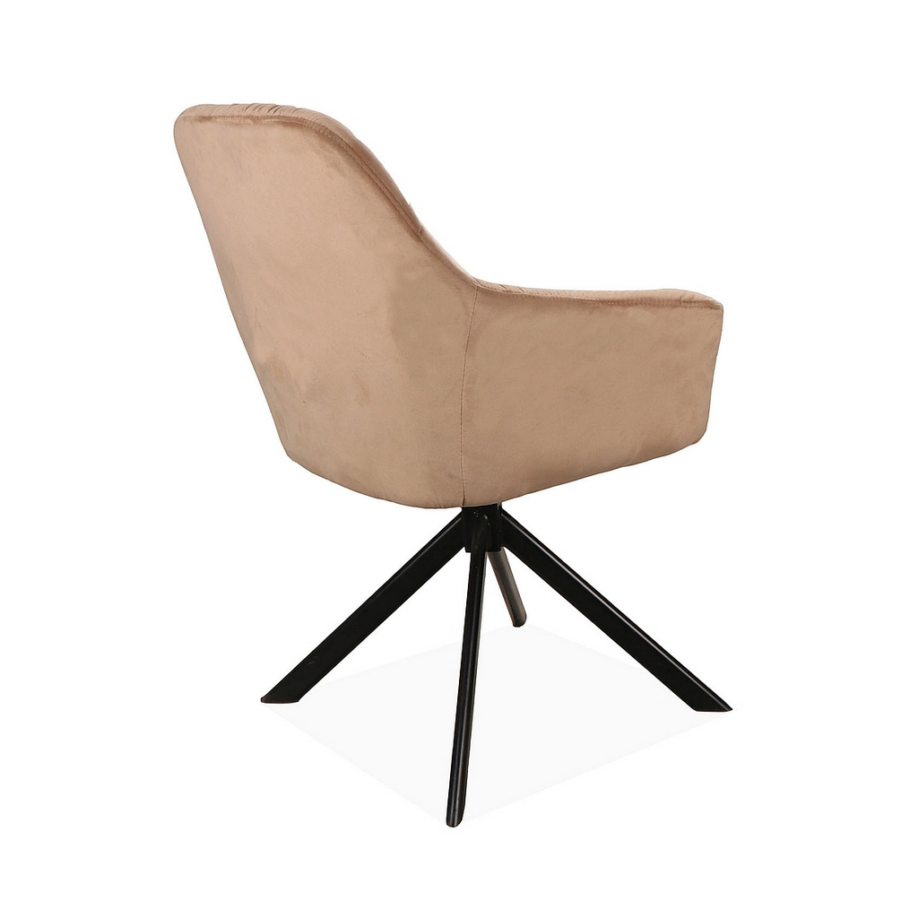Štvornohá kovová podnož nielen, že je zárukou perfektnej stability, ale zároveň dodáva stoličke štýl. V kombinácii so sedákom potiahnutým zamatovo hebkou tkaninou tvorí dohromady moderný a vkusný kúsok. Polstrovanie sedadla priamo nabáda k sadnutiu.