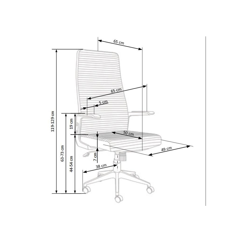 Kancelárske kreslo je potiahnuté pevnou látkou, ktorá je odolná voči odreninám a poškriabaniu. Pod jeho sedadlom sa nachádza hojdací mechanizmus, ktorý ponúka možnosť uzamknutia/odomknutia hojdania.