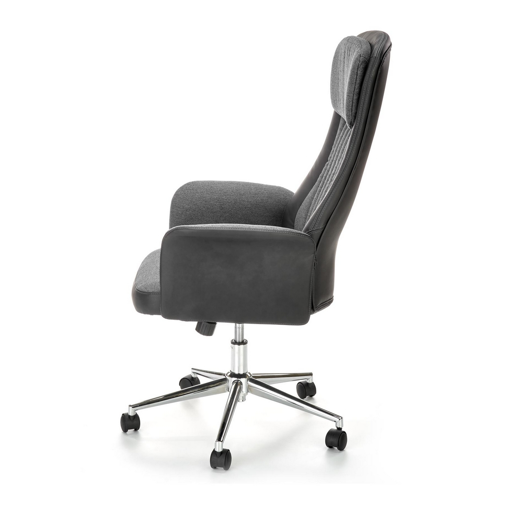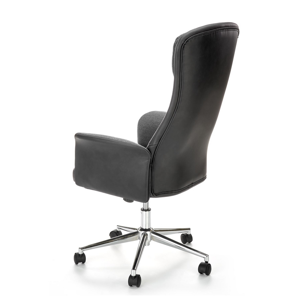 Otočné kancelárske kreslo Argento predstavuje elegantné, ale zároveň cenovo dostupné riešenie pre vašu kanceláriu alebo pracovňu. Čalúnené je kombináciou eko kože s látkou na kontaktných plochách. Pod sedákom nájdete hojdaciu mechaniku s možnosťou aretácie v základnej polohe, ešte nižšie potom pochrómovaný kríž s kolieskami na mäkké podlahy a koberce.