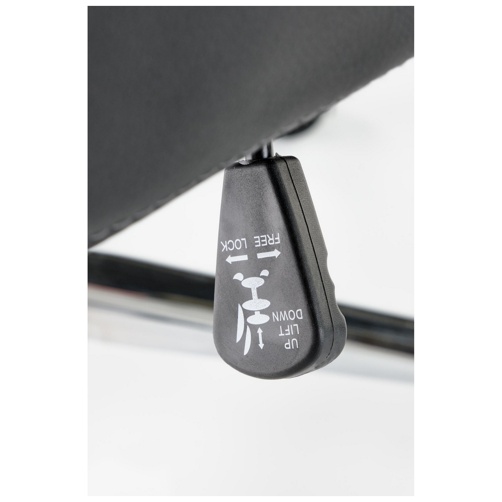 Pomocou páčky pod sedákom môžete hojdanie zablokovať v základnej polohe. Rovnaká páčka obsluhuje aj plynový piest, ktorým si nastavíte výšku sedu.