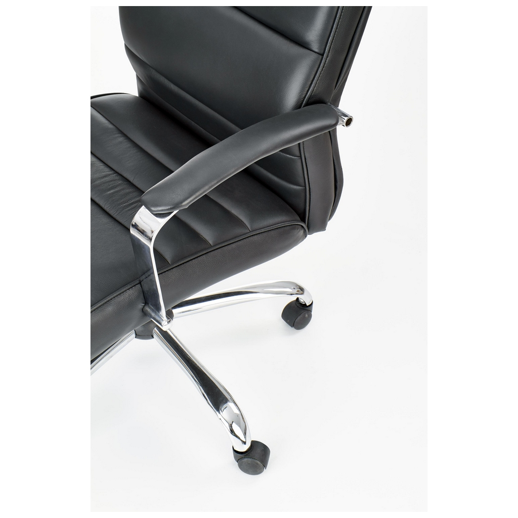 Dotyková časť operadla a sedadla kresla je čalúnená do pravej kožev decentnej čiernej farbe. Podrúčky sú tiež potiahnuté týmto exkluzívnym materiálom.