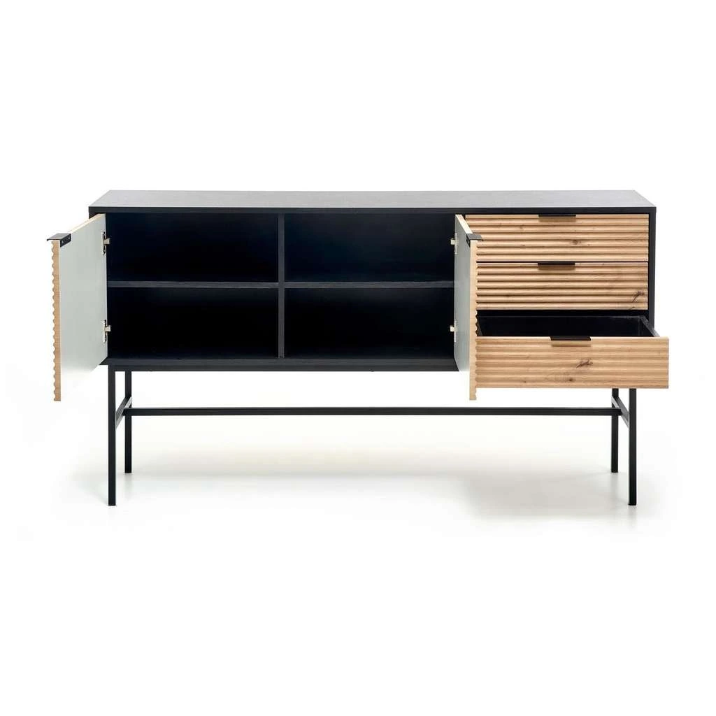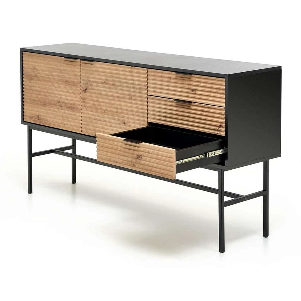 Komoda Murano prináša do vášho interiéru jedinečný spoj dizajnového a industriálneho štýlu. Jej prvotriedna kombinácia dreva a kovu vytvára pevnú a zároveň štýlovú konštrukciu, ktorá poslúži ako praktický a dekoratívny prvok vo vašej domácnosti alebo kancelárii.