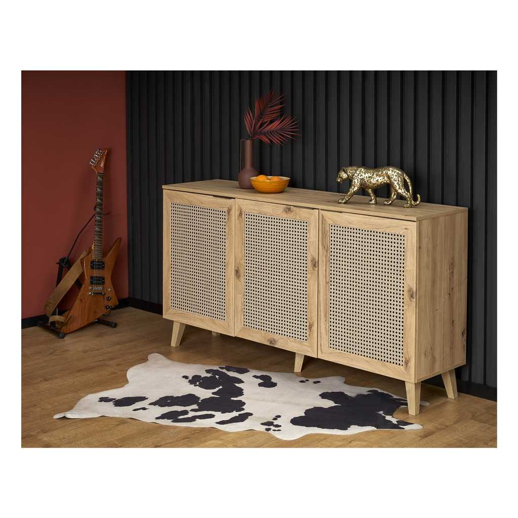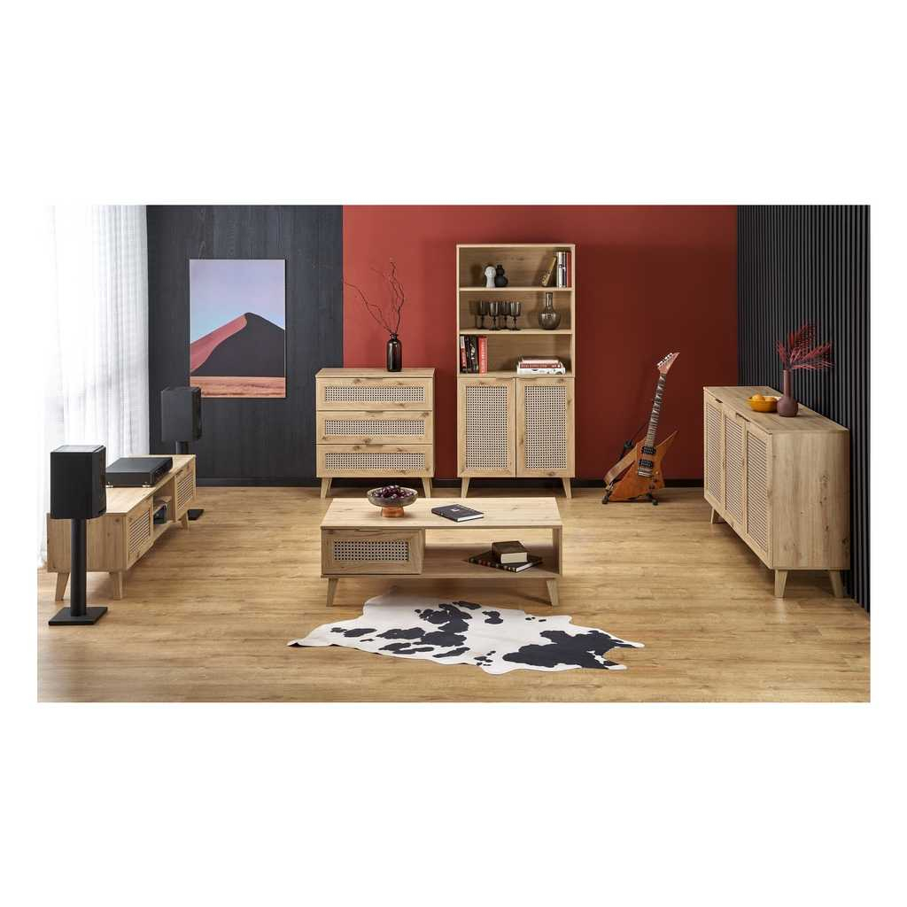 Nábytková rada Rustico vnesie do vášho bytu alebo kancelárie sviežu, prirodzenú atmosféru. Jednoduchá, celodrevená konštrukcia s imitáciou ratanu na dvierkach pôsobí exoticky a zároveň vkusne - v modernom interiéri aj popri konzervatívnejších dekoráciách.