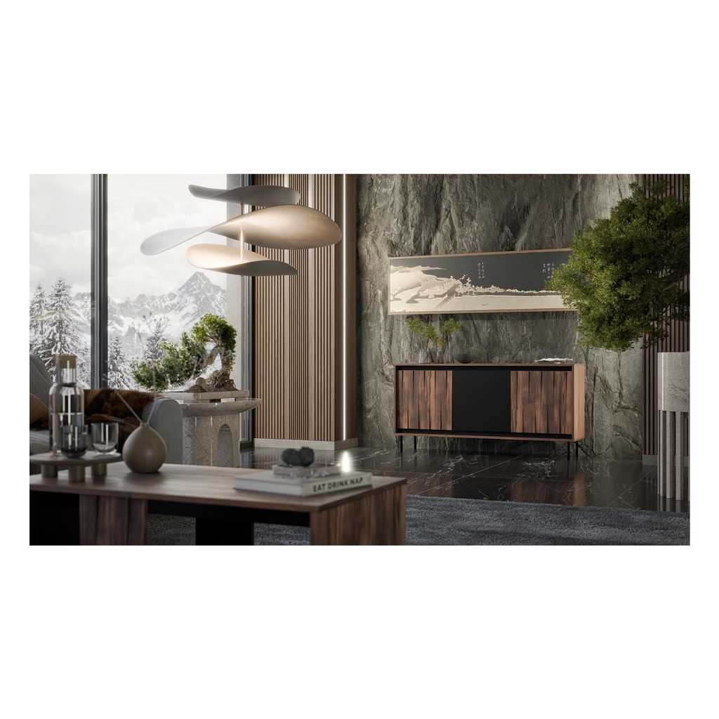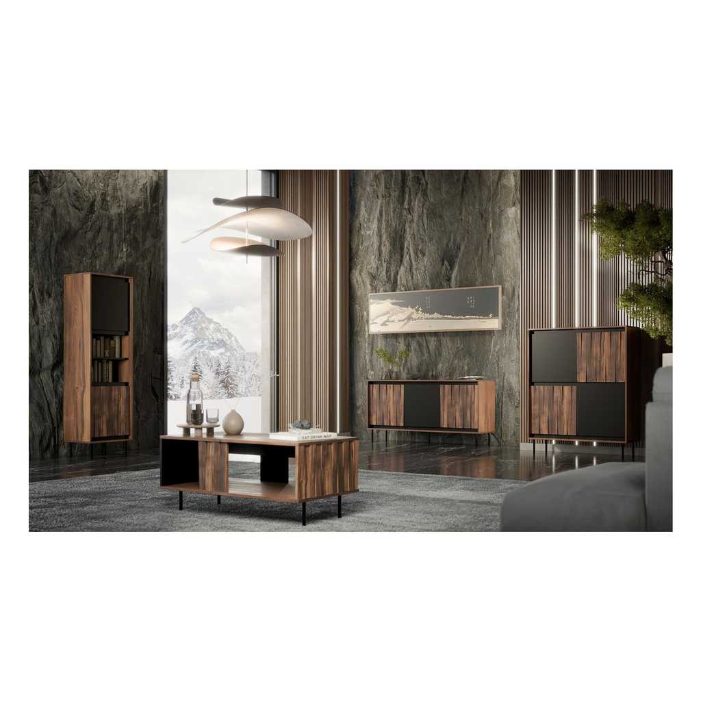 Nábytkový rad Stuga si vás získa kombináciou rustikálneho vzhľadu a modernej elegancie. Kľúčovým slovom je tu kontrast - medzi vzorom orecha, ktorý navodzuje útulnú atmosféru, a čiernym lakom, ako aj medzi hladkými povrchmi a hravou "vlnitosťou" niektorých dvierok. To všetko dodáva kolekcii Stuga nezameniteľný šmrnc.