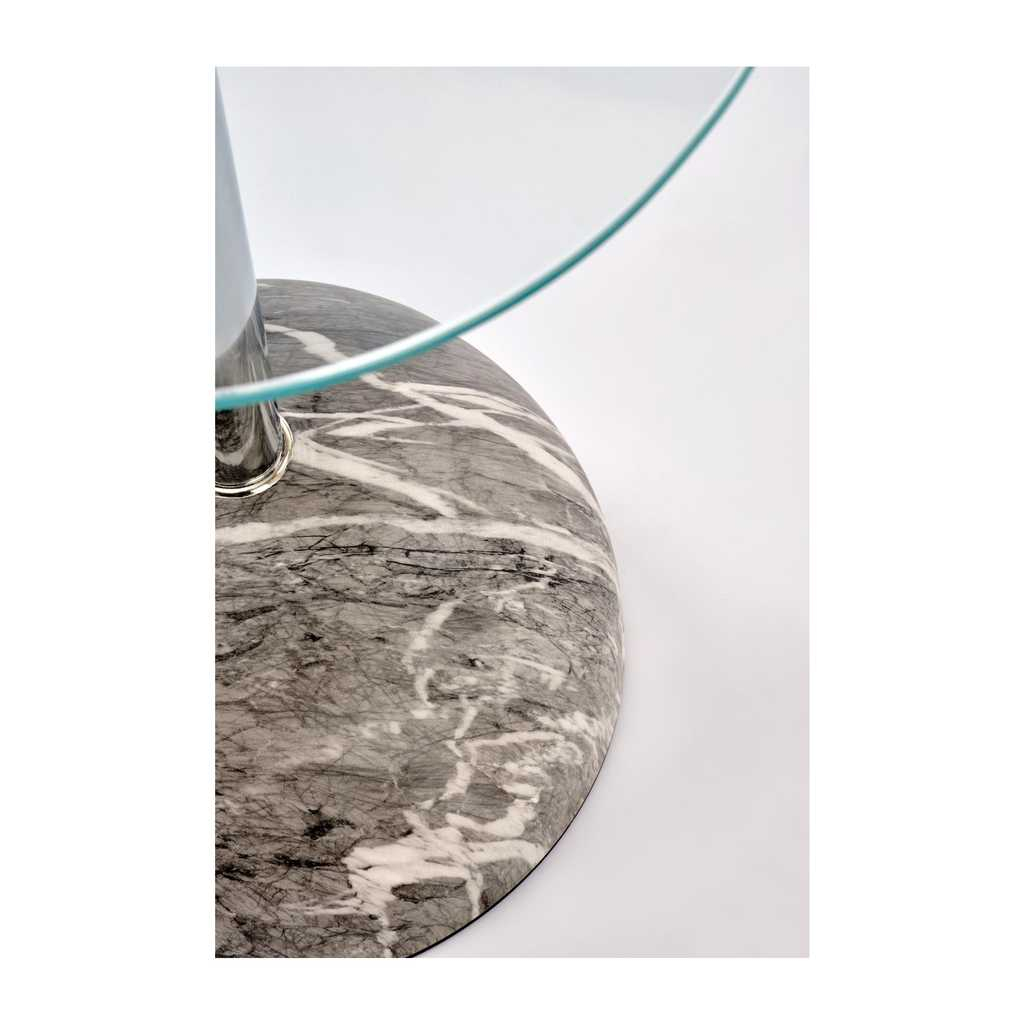 Konferenčný stolík Calix je kompaktný a štýlový doplnok do vášho obývacieho priestoru, ktorý zaujme svojim moderným dizajnom a praktickými rozmermi. Vďaka svojmu kruhovému tvaru hornej dosky zo skla je ideálny na uloženie drobných predmetov ako šálka kávy či dekoračné doplnky, pričom jeho kovová podnož zaisťuje pevnosť a stabilitu. Tento stolík je veľmi ľahký, čo uľahčuje jeho presúvanie podľa potreby.