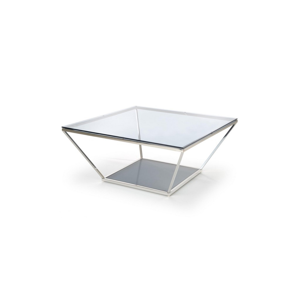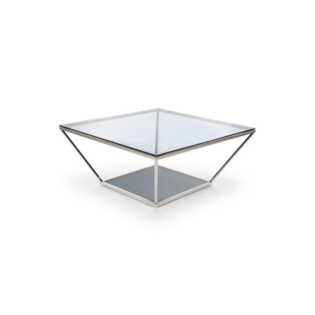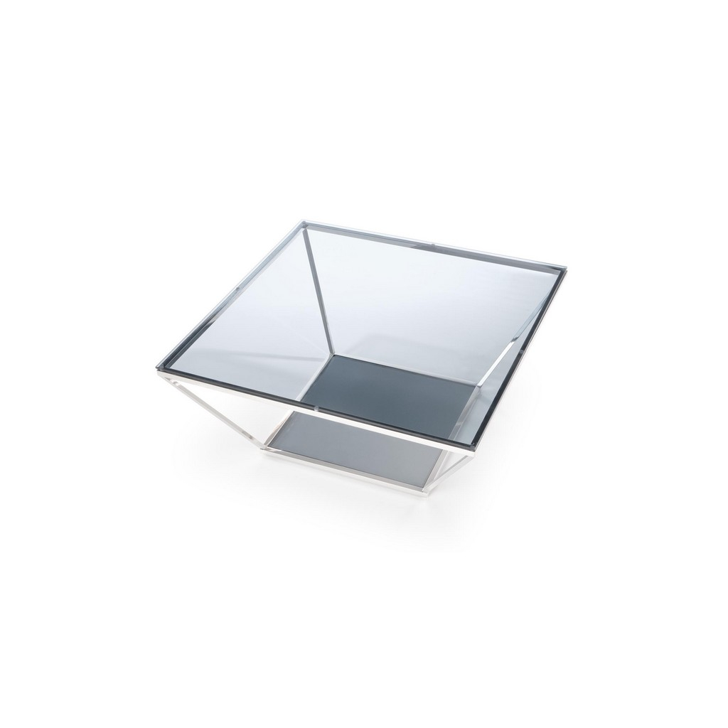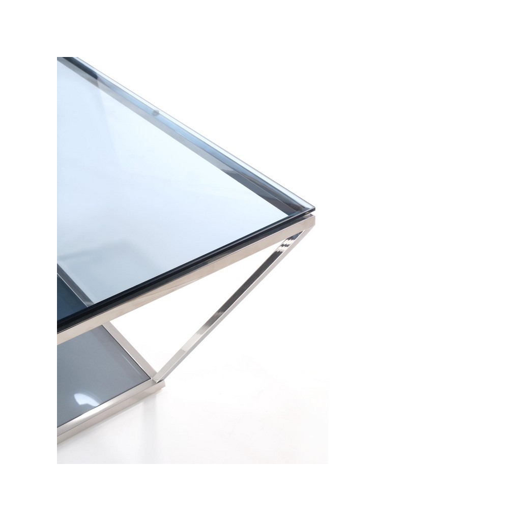 Štvorcová vrchná doska z tónovaného skla je položená na konštrukcii z nerezovej ocele. Tá je charakteristická svojím nevšedným tvarom. Nerezová oceľ v striebornom prevedení sa stará o výbornú celkovú stabilitu.