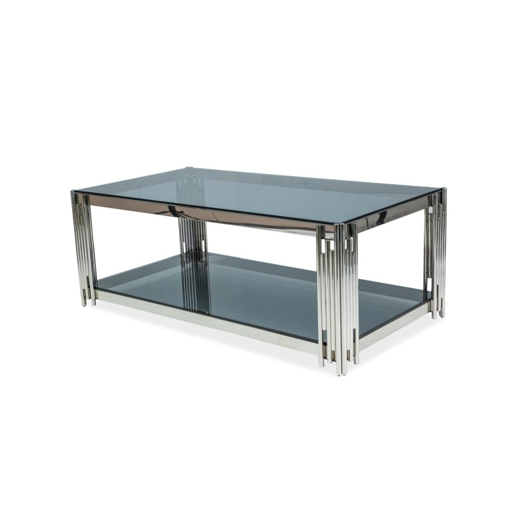 Vrchná doska stola je vyrobená z tvrdeného skla s dymovou úpravou. Skvelo tak ladí s pochrómovanou kovovou podnožou.