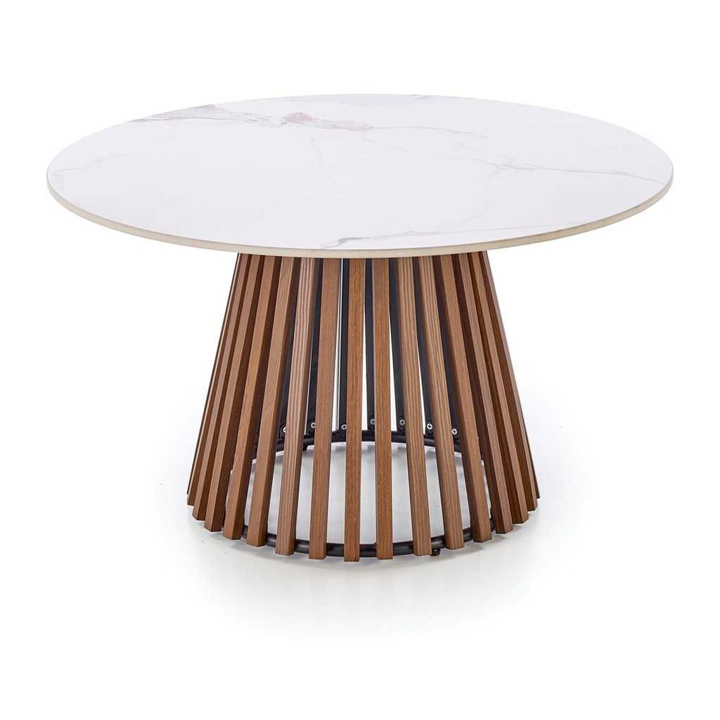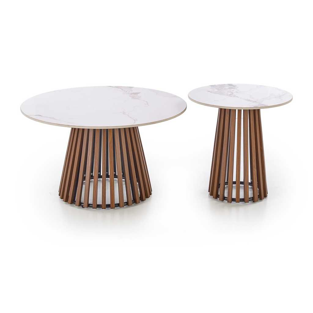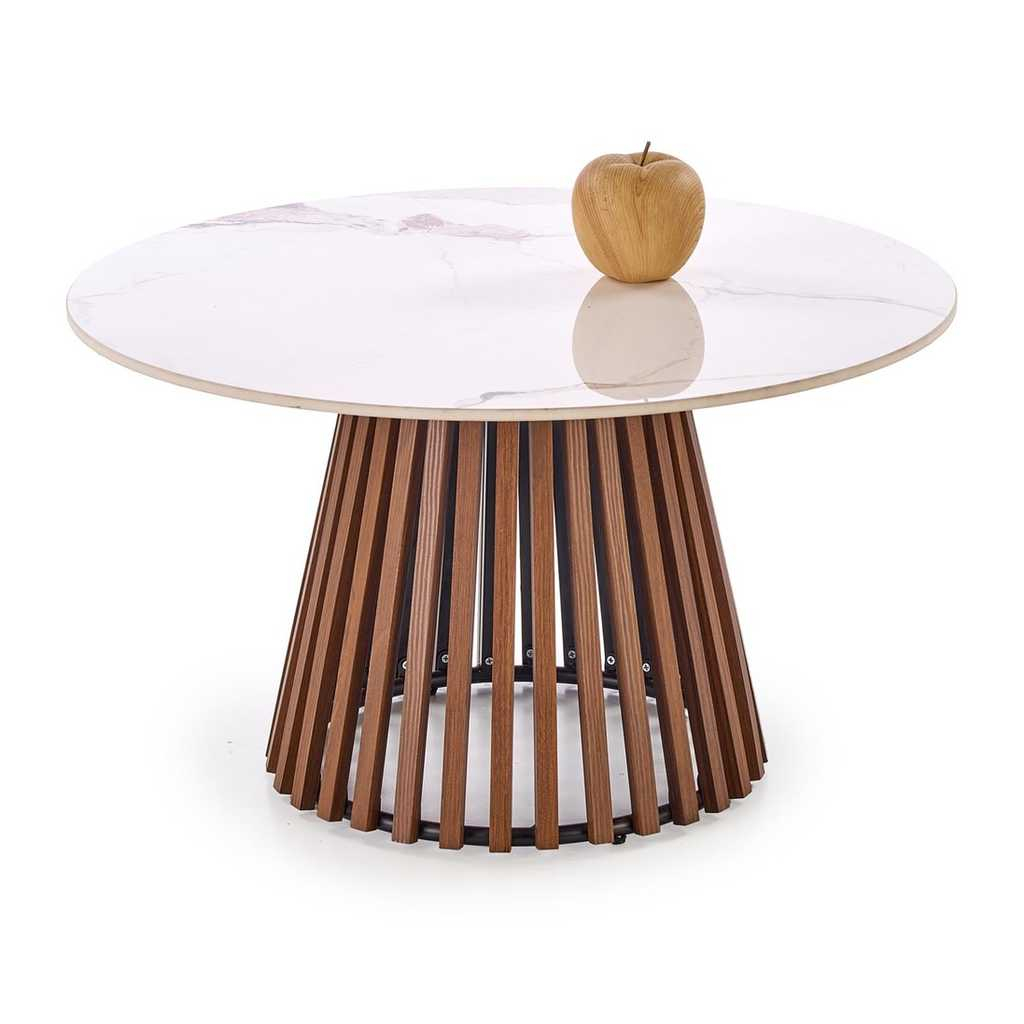 Konferenčný stolík Haskell vyniká svojím originálnym dizajnom a kvalitným spracovaním, ktoré dodá štýl a eleganciu každému interiéru. Vrchná doska z prírodného kameňa prináša odolnosť a ľahkú údržbu, zatiaľ čo podnož z dreva zabezpečuje stabilitu a teplý, prírodný vzhľad. Stolík je ideálny doplnok pre obývacie priestory, kancelárie alebo čakárne, kde nielen plní praktickú funkciu, ale aj estetickú.
