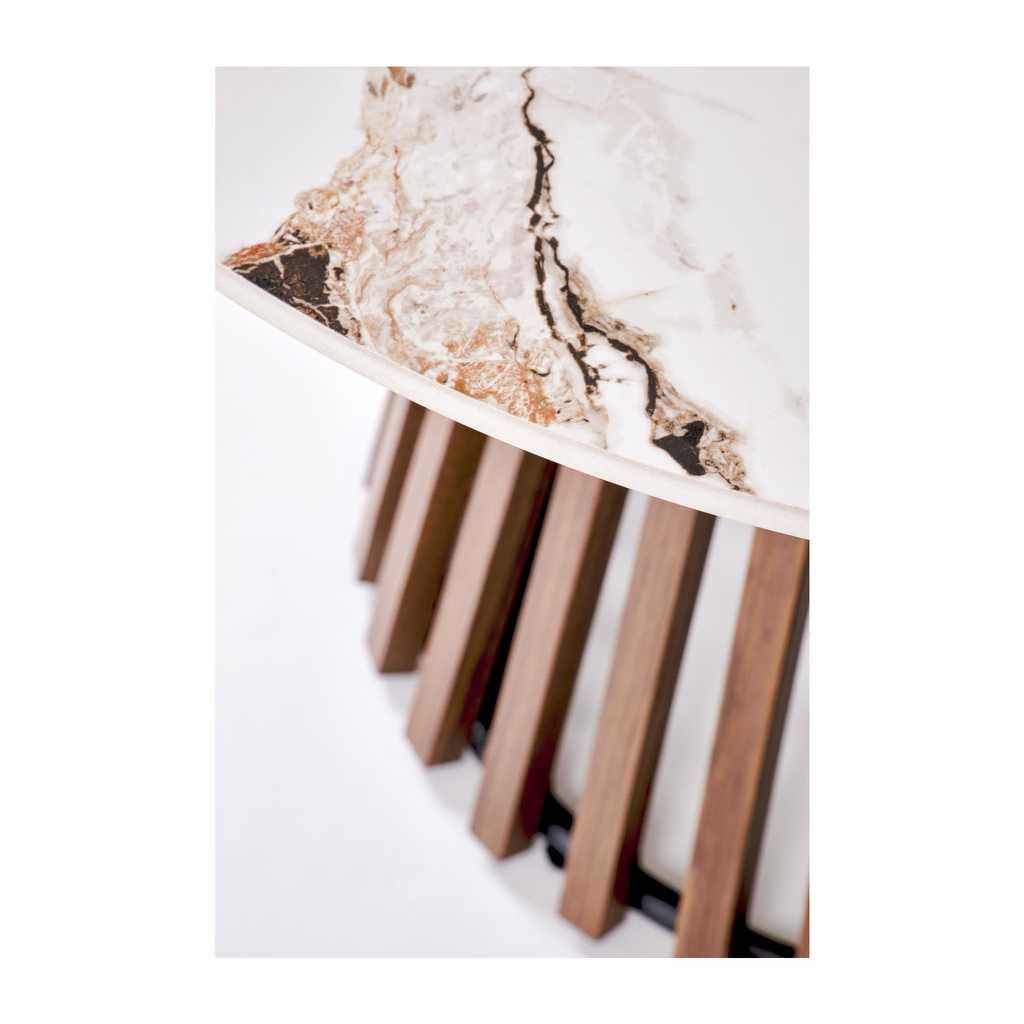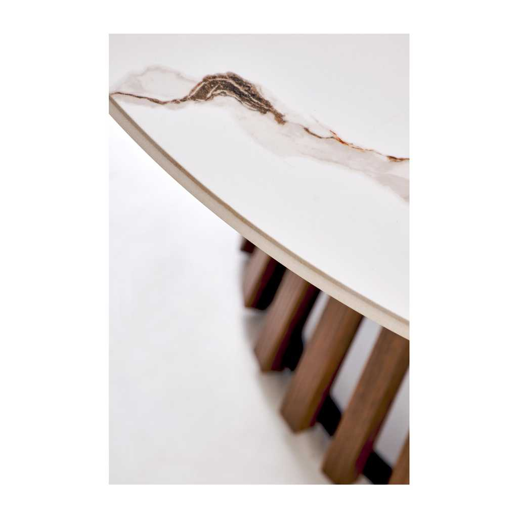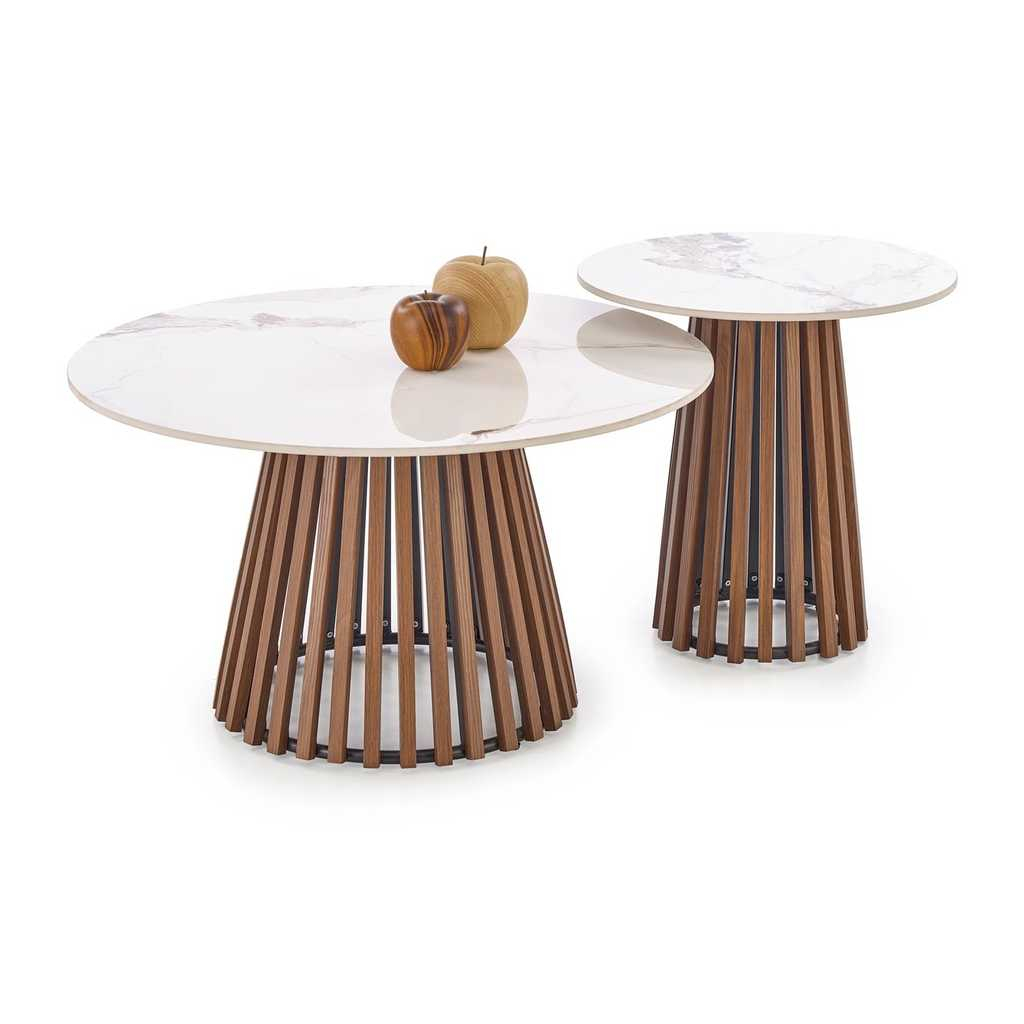 Konferenčný stolík Haskell vyniká svojím originálnym dizajnom a kvalitným spracovaním, ktoré dodá štýl a eleganciu každému interiéru. Vrchná doska z prírodného kameňa prináša odolnosť a ľahkú údržbu, zatiaľ čo podnož z dreva zabezpečuje stabilitu a teplý, prírodný vzhľad. Stolík je ideálny doplnok pre obývacie priestory, kancelárie alebo čakárne, kde nielen plní praktickú funkciu, ale aj estetickú.