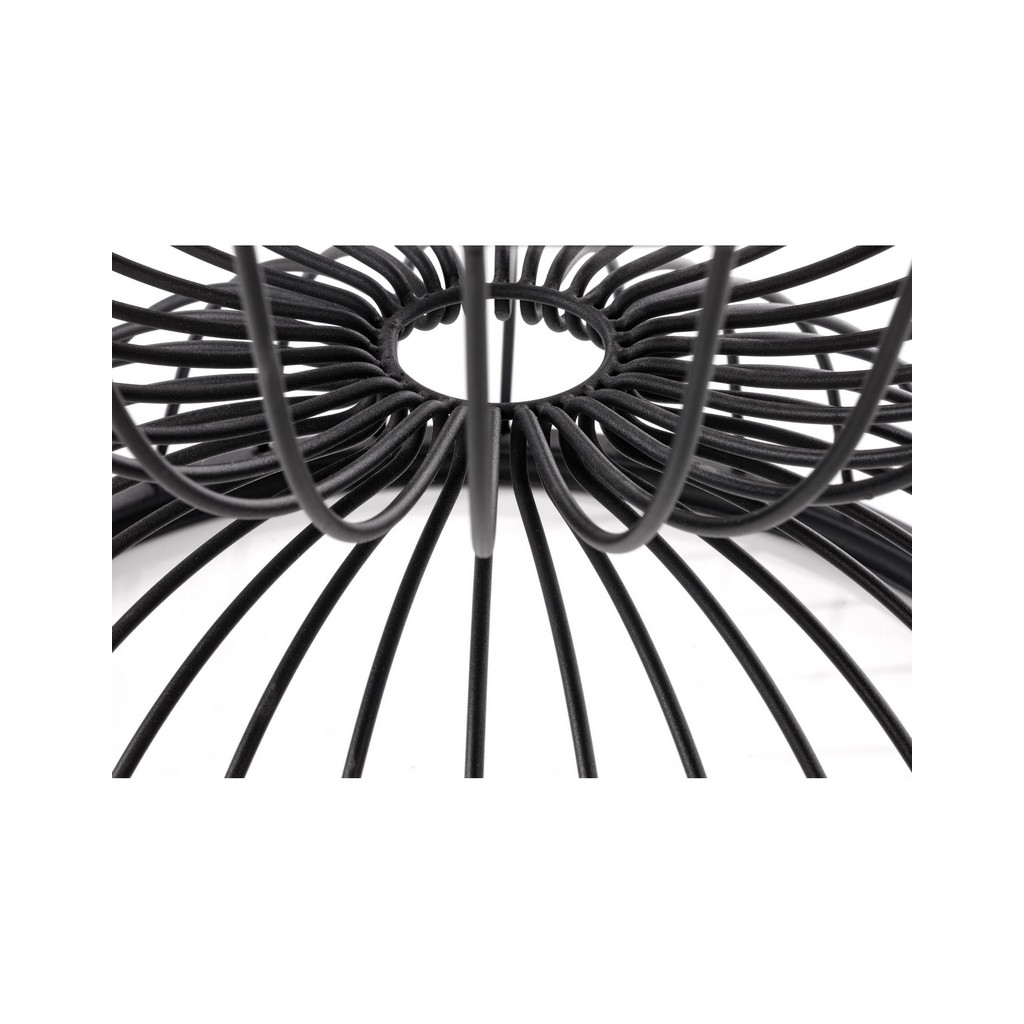 Horná doska z dýhovanej MDF dosky leží na unikátne tvarovanej podnoži. Tá je z práškovanej ocele a pripomína presýpacie hodiny, zároveň poskytuje stolu výbornú stabilitu.