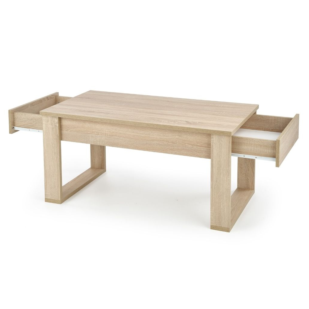 Konferenčný stolík má jednoduchý, ale praktický dizajn. Jeho súčasťou sú totiž 2 ukryté šuplíky o rozmeroch 45 × 38,5 × 8,8 cm, ktoré sa vysúvajú z bočných strán. Doska stola i jeho konštrukcia je vyrobená z dyhovaných nábytkových dosiek. Nosnosť stolíka je 30 kg.