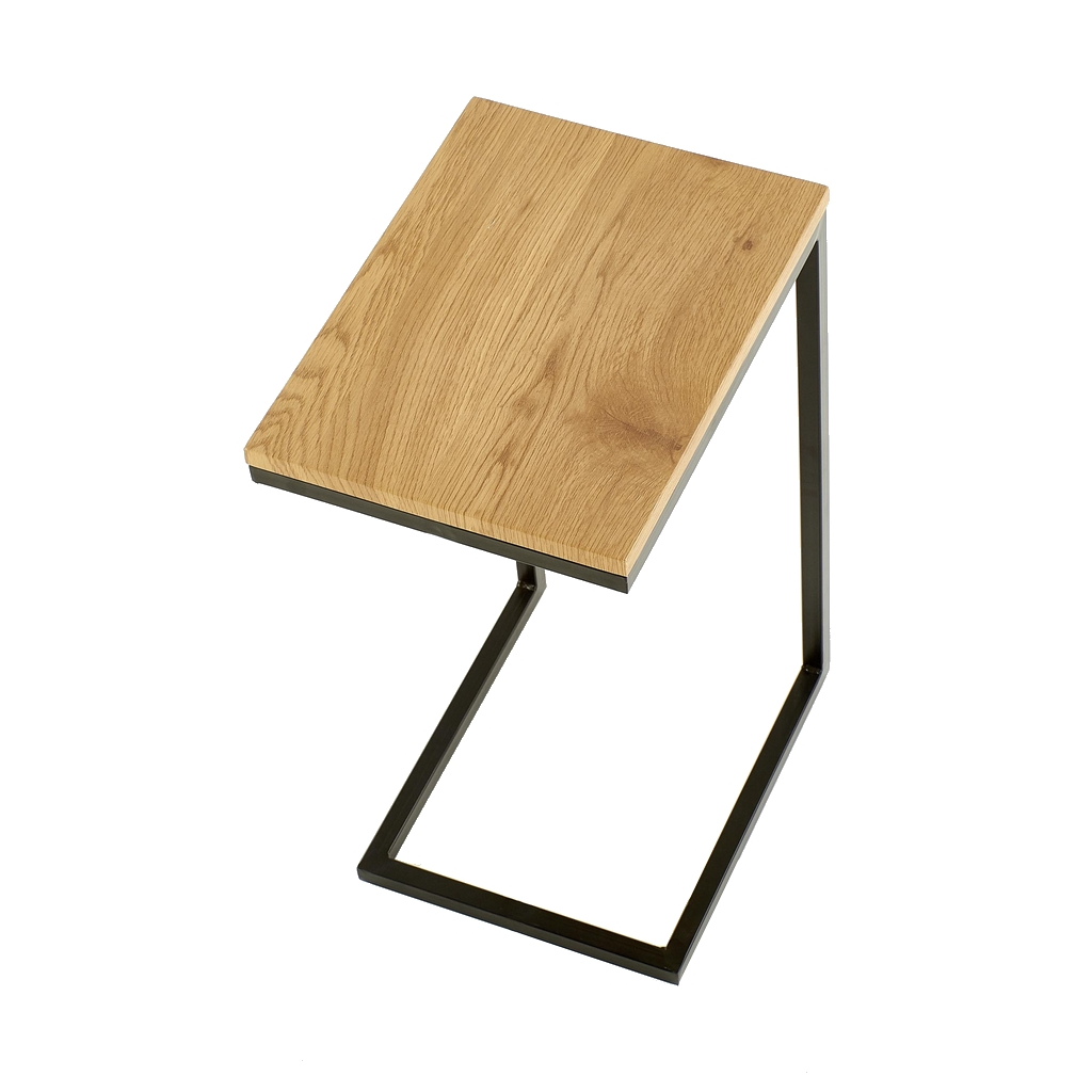 Skladá sa z hornej laminovanej drevovláknitej dosky v modernom dezéne dubu zlatého a kovovej podnože z čiernej práškovanej ocele.
