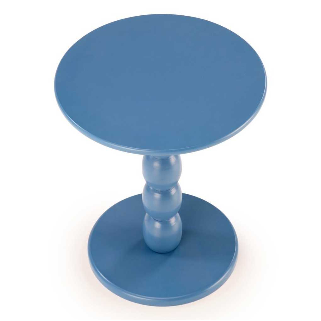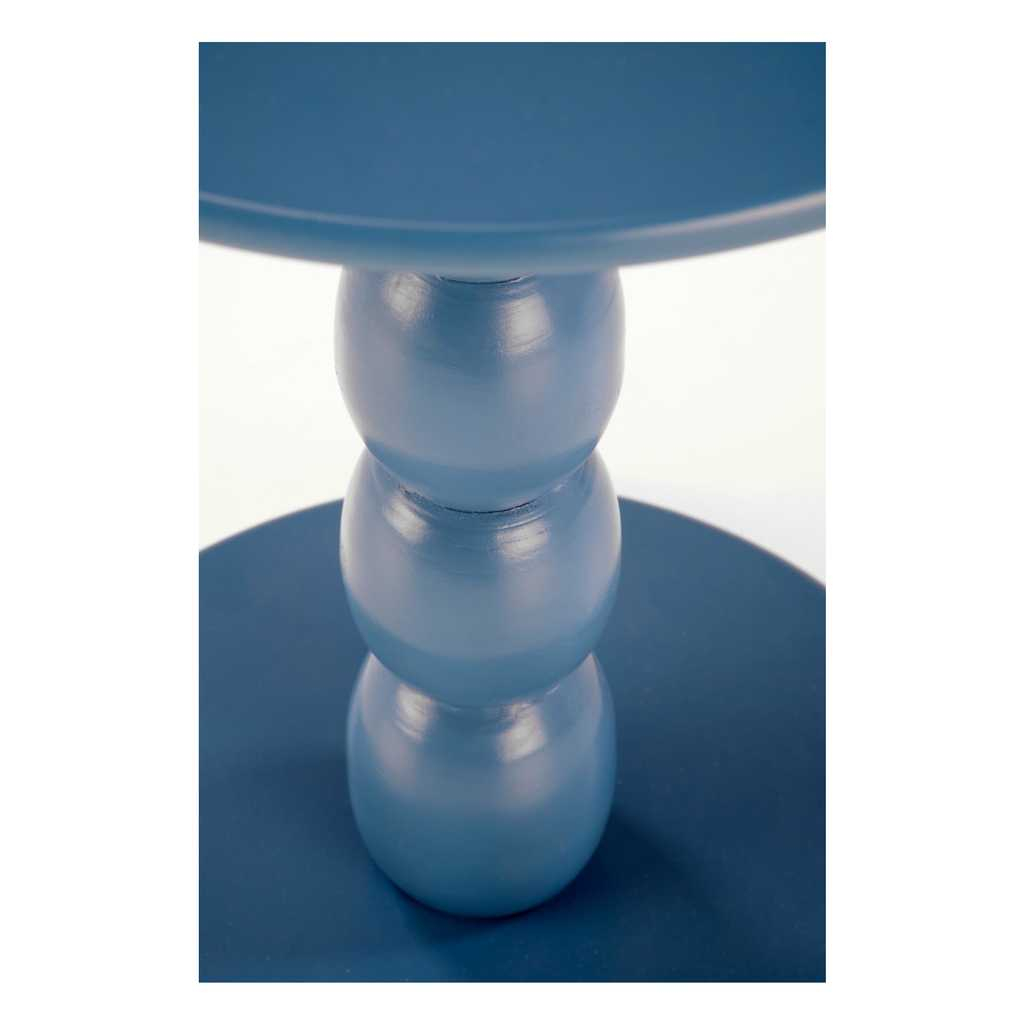 Vrchná doska má tvar kruhu s priemerom 40 cm. Vo výške 47 cm ju drží kĺbová noha - hlavný dizajnový prvok celého stola.