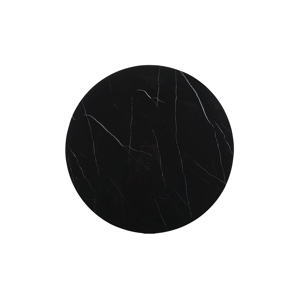 Horná doska stolíka je vyrobená z tvrdeného skla v imitácii mramoru a jej údržba je jednoduchá. Kovová podnož napomáha stabilite stolíka a tvorí i ozdobnú časť dizajnu.