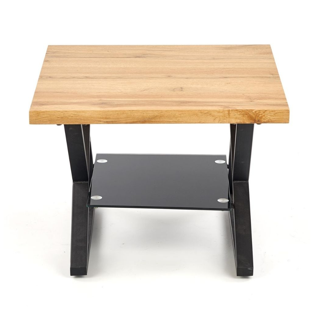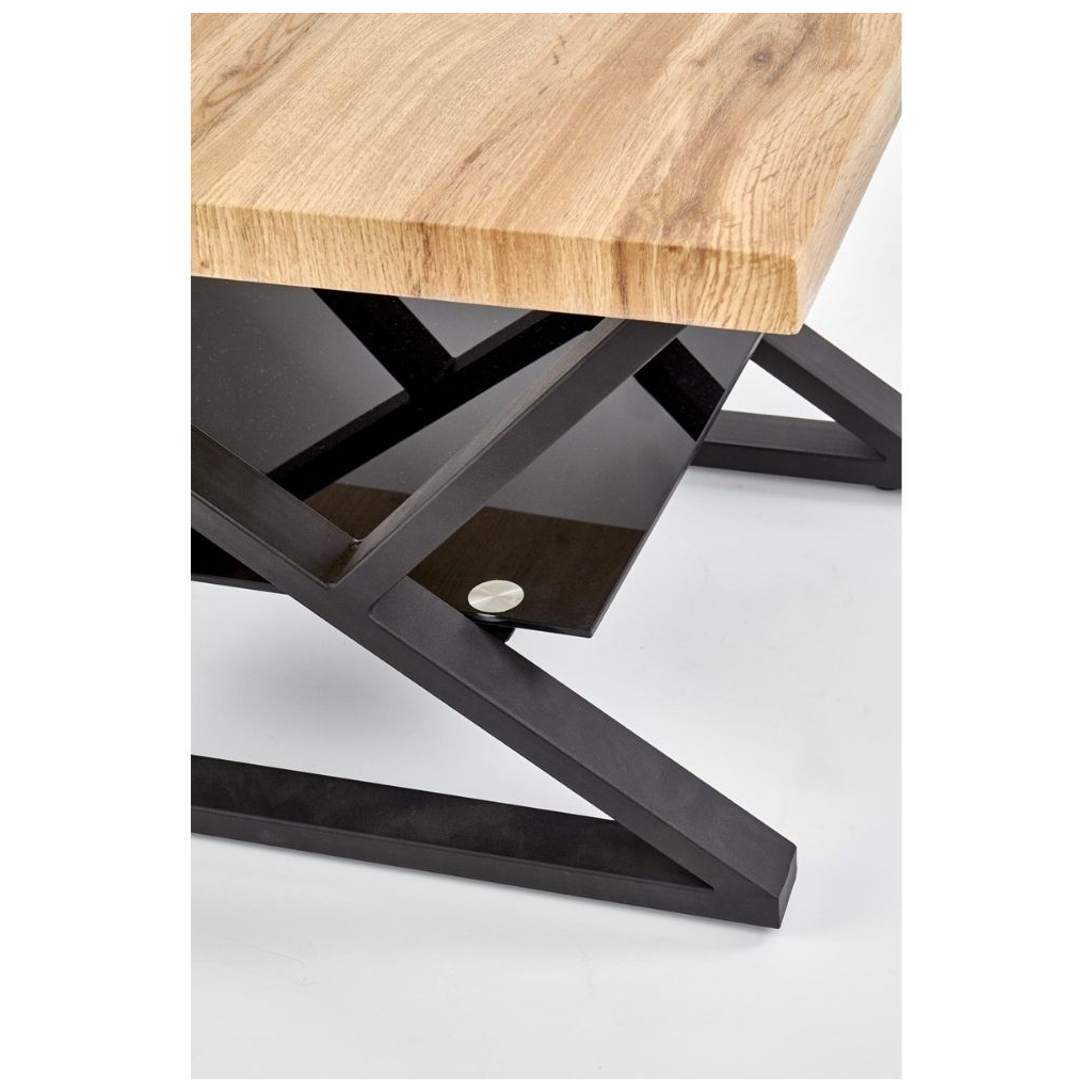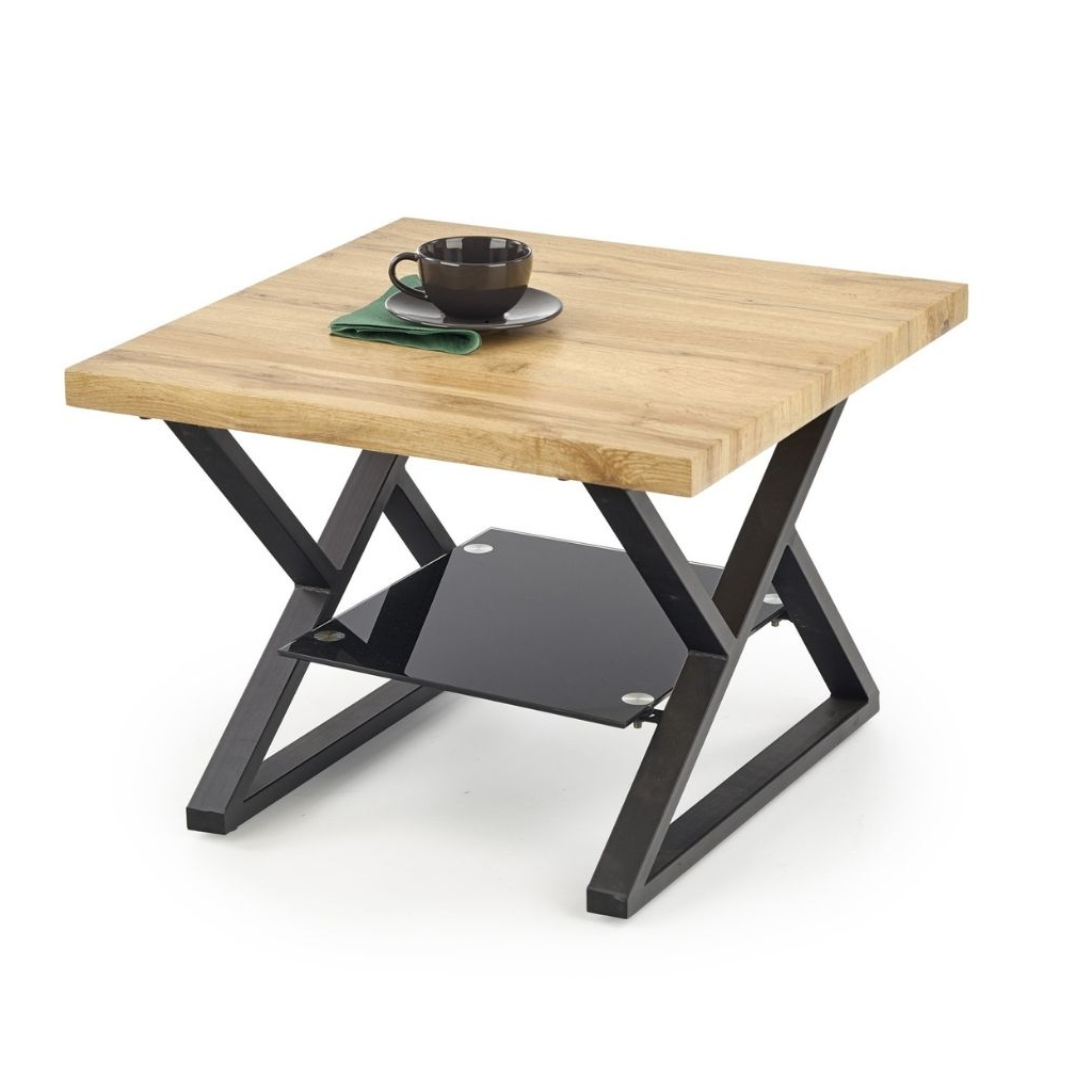 Konferenčný stolík Xena štvorcový, prírodné drevo / čierna