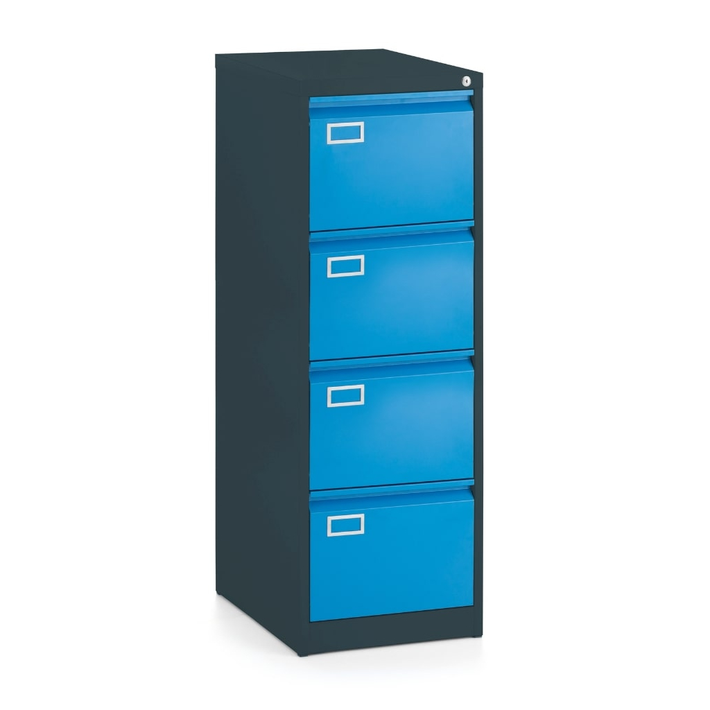Kovová kartotéka A4 - 4 zásuvky, 45,5 x 62 x 132 cm, cylindrický zámok, modrá - ral 5012