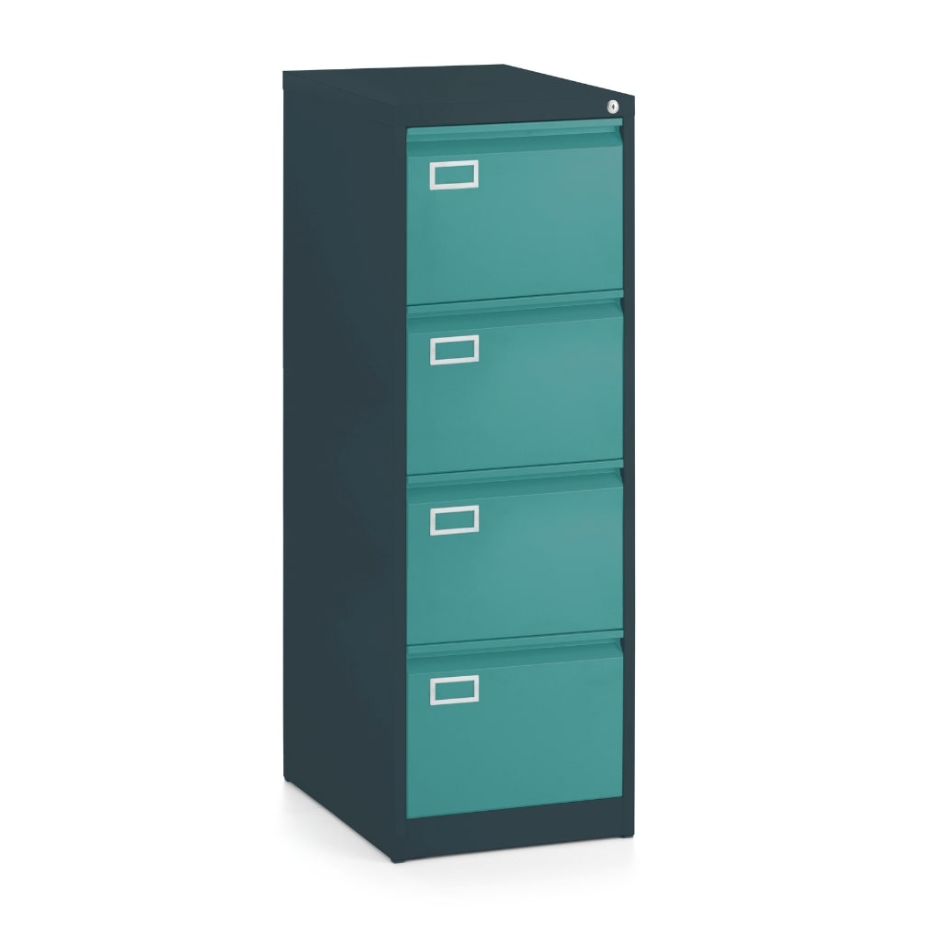 Kovová kartotéka A4 - 4 zásuvky, 45,5 x 62 x 132 cm, cylindrický zámok, zelená - ral 6033