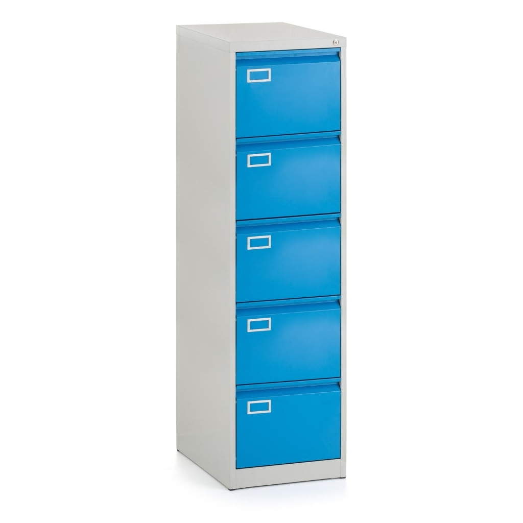 Kovová kartotéka A4 - 5 zásuvek, 45,5 x 62 x 162,5 cm, cylindrický zámok, modrá - ral 5012