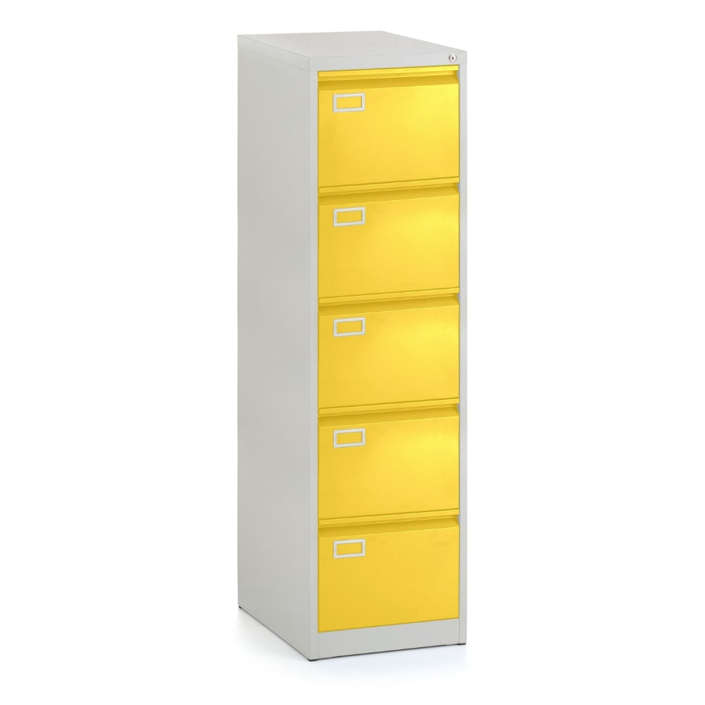 Kovová kartotéka A4 - 5 zásuvek, 45,5 x 62 x 162,5 cm, cylindrický zámok, žltá - ral 1023