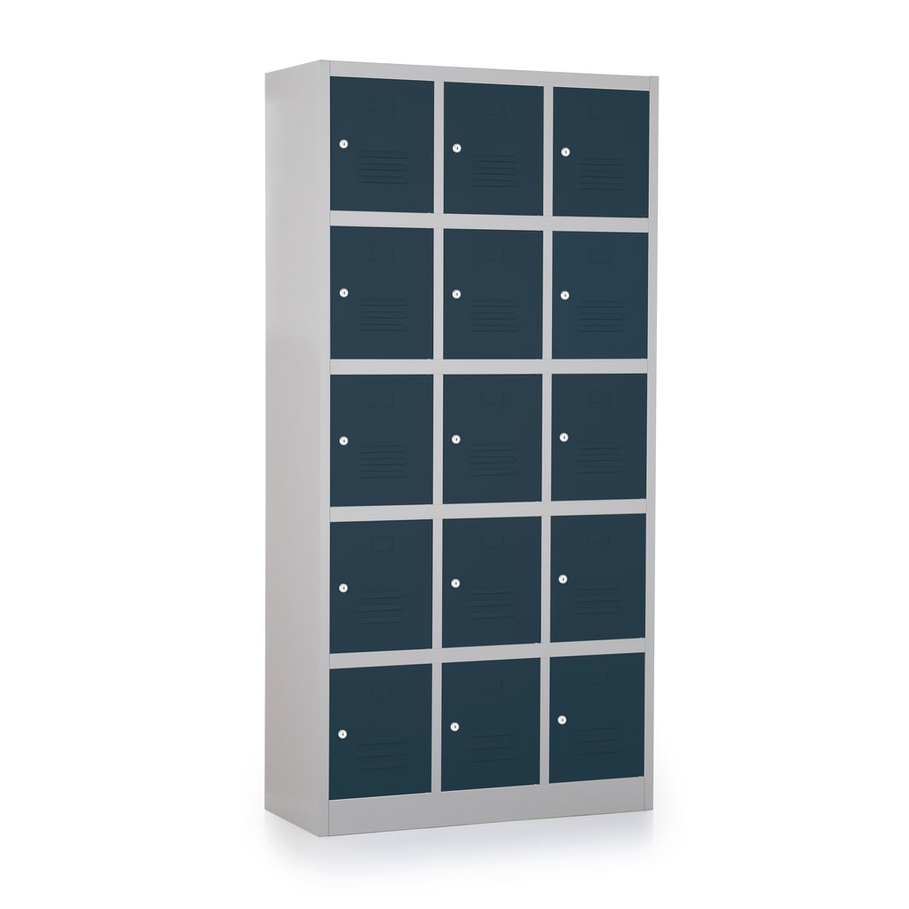 Kovová šatníková skrinka - 15 boxov, 90 x 40 x 185 cm, cylindrický zámok, antracitová - ral 7016