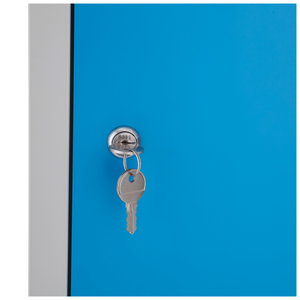Kovová šatníková skrinka - 3 boxy, 38 x 45 x 185 cm, cylindrický zámok, modrá - ral 5012