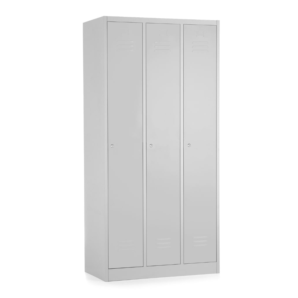 Kovová šatníková trojskrinka je pre hromadné prezliekárne ideálnym riešením. V priestore sa dá jednoducho pripojiť k iným šatňovým skrinkám, a navyše vytvorí dostatok miesta na uloženie nevyhnutných vecí.