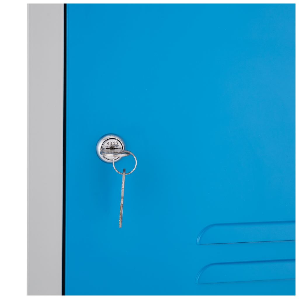 Kovová šatníková skrinka - 4 boxy, 38 x 45 x 185 cm, cylindrický zámok, modrá - ral 5012