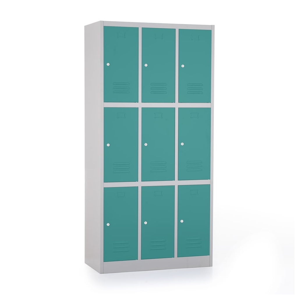 Kovová šatníková skrinka - 9 boxov, 90 x 45 x 185 cm, cylindrický zámok, zelená - ral 6033