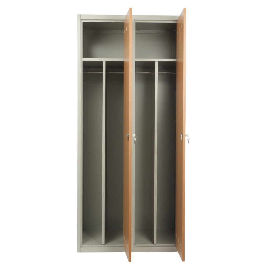 Kovová šatníková skrinka s drevenými dverami, 80 x 50 x 180 cm, cylindrický zámok, buk