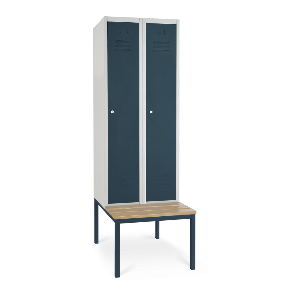 Kovová šatníková skrinka s lavičkou, cylindrický zámok
