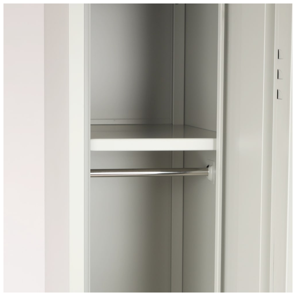 Skriňa má 2 oddiely – každý so svojím vlastným cylindrickým zámkom, ku ktorému dostanete 2 kľúče (celkom teda 4). Vaše šaty a batožina tak budú v bezpečí.