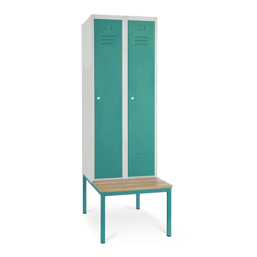 Kovová šatníková skrinka s lavičkou, cylindrický zámok