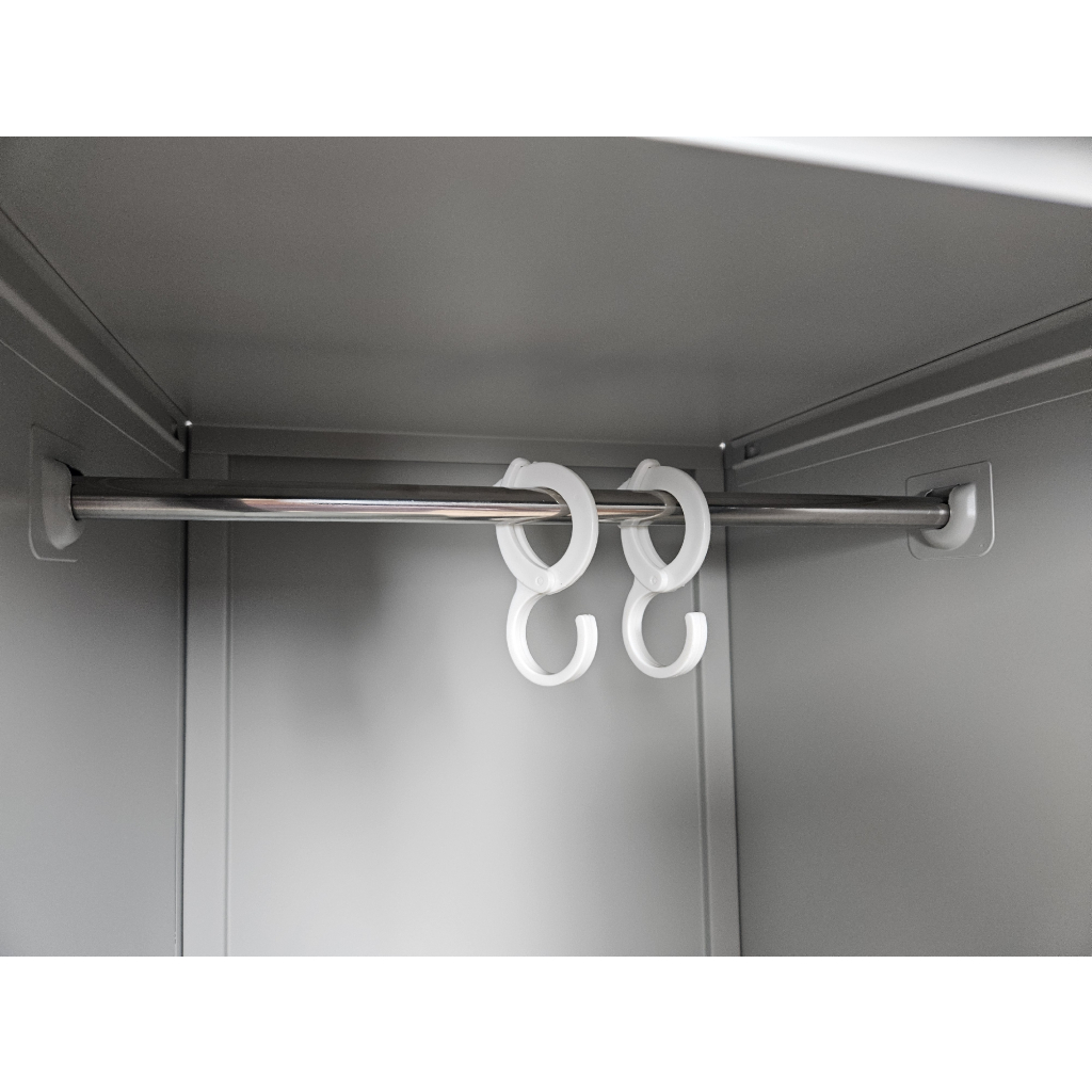 Všetky oddiely sú v hornej časti vybavené šatníkovou tyčou s 2 háčikmi. Na dvierkach nájdete držiaky na menovky a tiež prieduchy, ktoré zaistia vetranie.