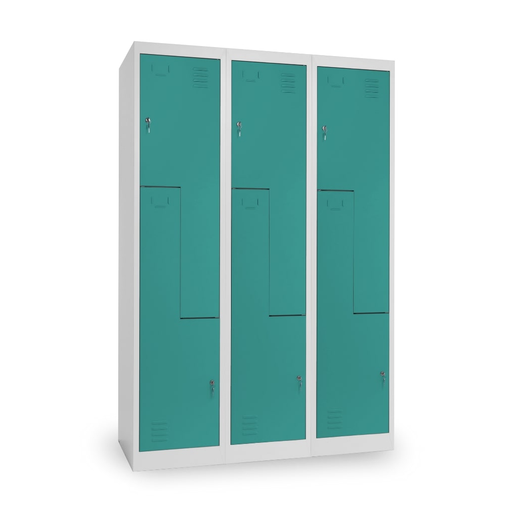 Kovová šatníková skrinka Z, 3 oddiely, 120 x 50 x 180 cm, cylindrický zámok, zelená - ral 6033