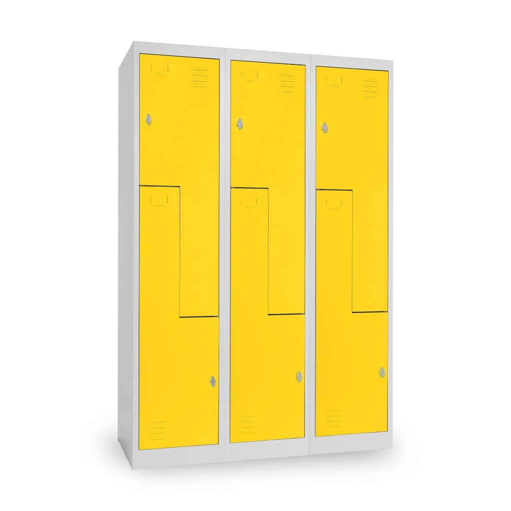 Kovová šatníková skrinka Z, 3 oddiely, 120 x 50 x 180 cm, otočný zámok, žltá - ral 1023