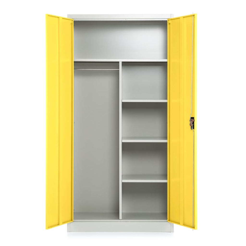 Vybavte si svoju kanceláriu praktickou kovovou šatňovou skriňou, ktorá vám vytvorí dostatok priestoru nielen na vaše odevy. Okrem uloženia oblečenia ju totiž môžete využiť aj na archiváciu najrôznejších dokumentov, napríklad vo forme zložiek či šanónov. Táto kombinovaná skriňa vám jednoducho ušetrí veľa starostí.