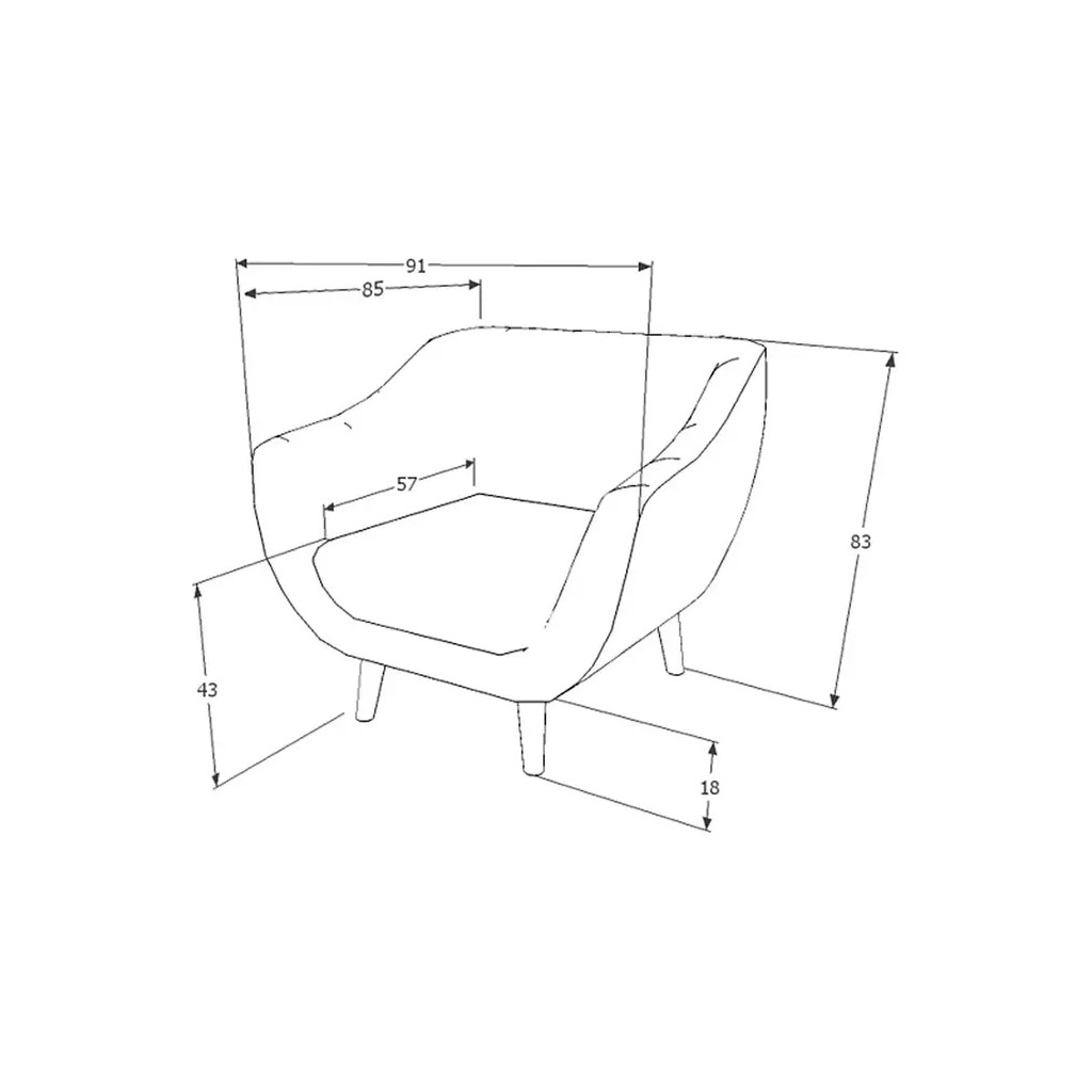 Jeho rozmery – dĺžka 91 cm, hĺbka 85 cm a výška 83 cm – spolu s hĺbkou sedadla 57 cm zaručujú dostatok miesta na pohodlný odpočinok. Výška sedu od zeme 43 cm a výška operadla chrbta 40 cm zabezpečujú správne držanie tela počas sedenia. Kreslo nie je rozkladacie, čo podčiarkuje jeho kompaktnosť a jednoduchú údržbu.