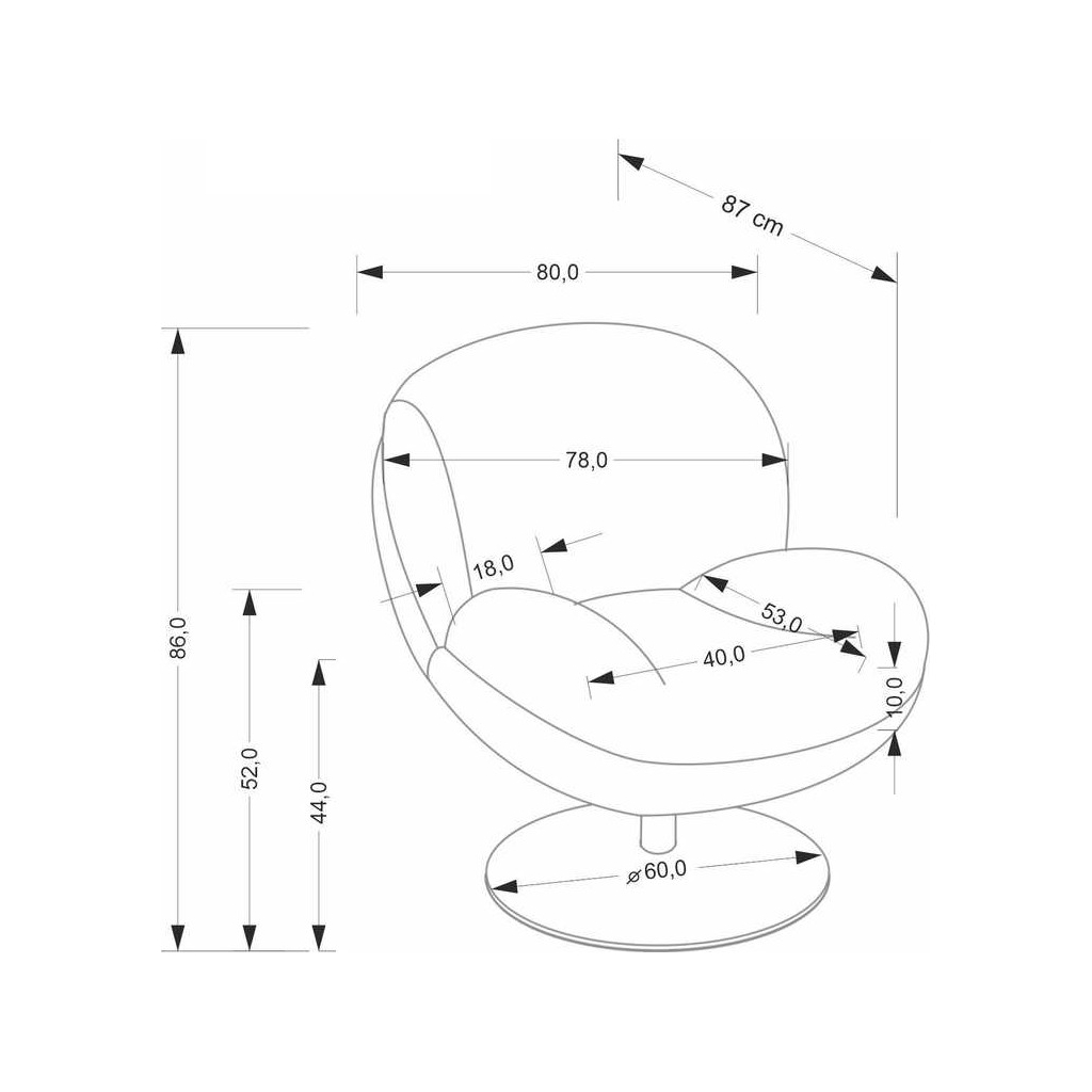 - Rozmery: dĺžka 80 cm, hĺbka 87 cm, výška 86 cm